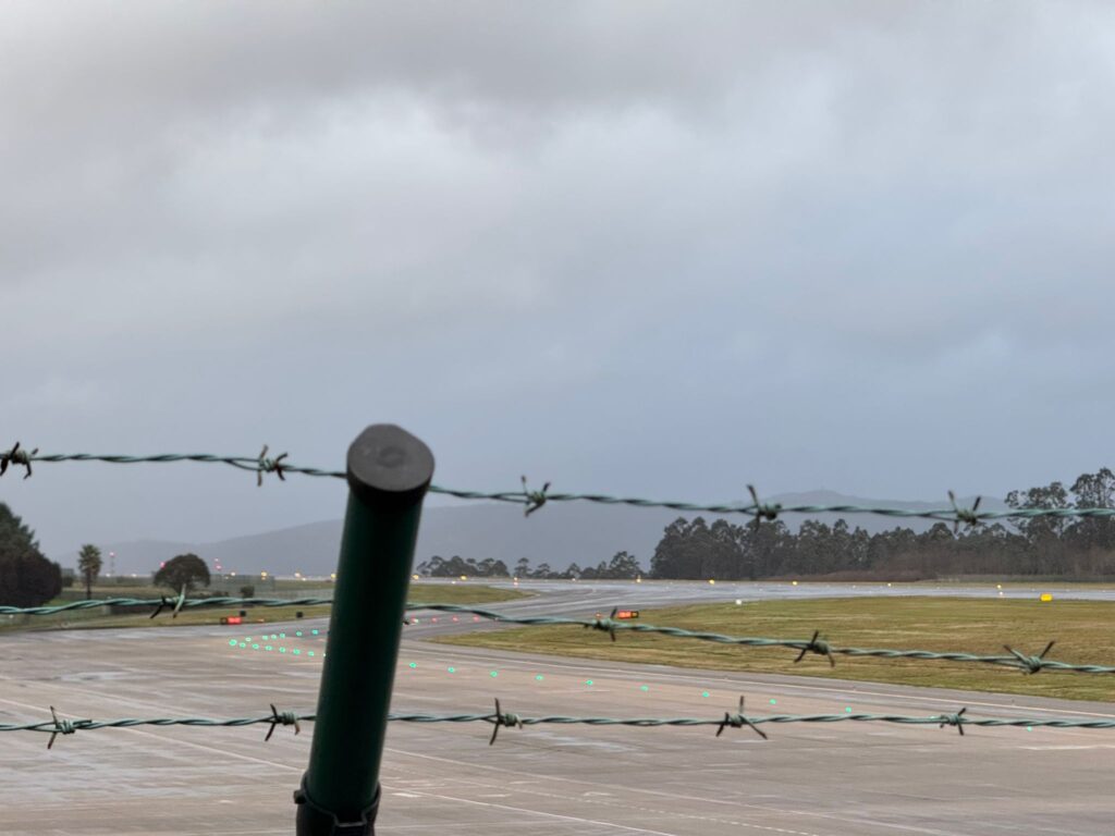 La llegada de Leonardo a Galicia ya se deja sentir en todos los ámbitos y si Vigo ha quedado aislada por tierra con el transporte ferroviario, algo similar está pasando en el aeropuerto de Peinador, con una pista de aterrizaje que se encuentra prácticamente vacía.