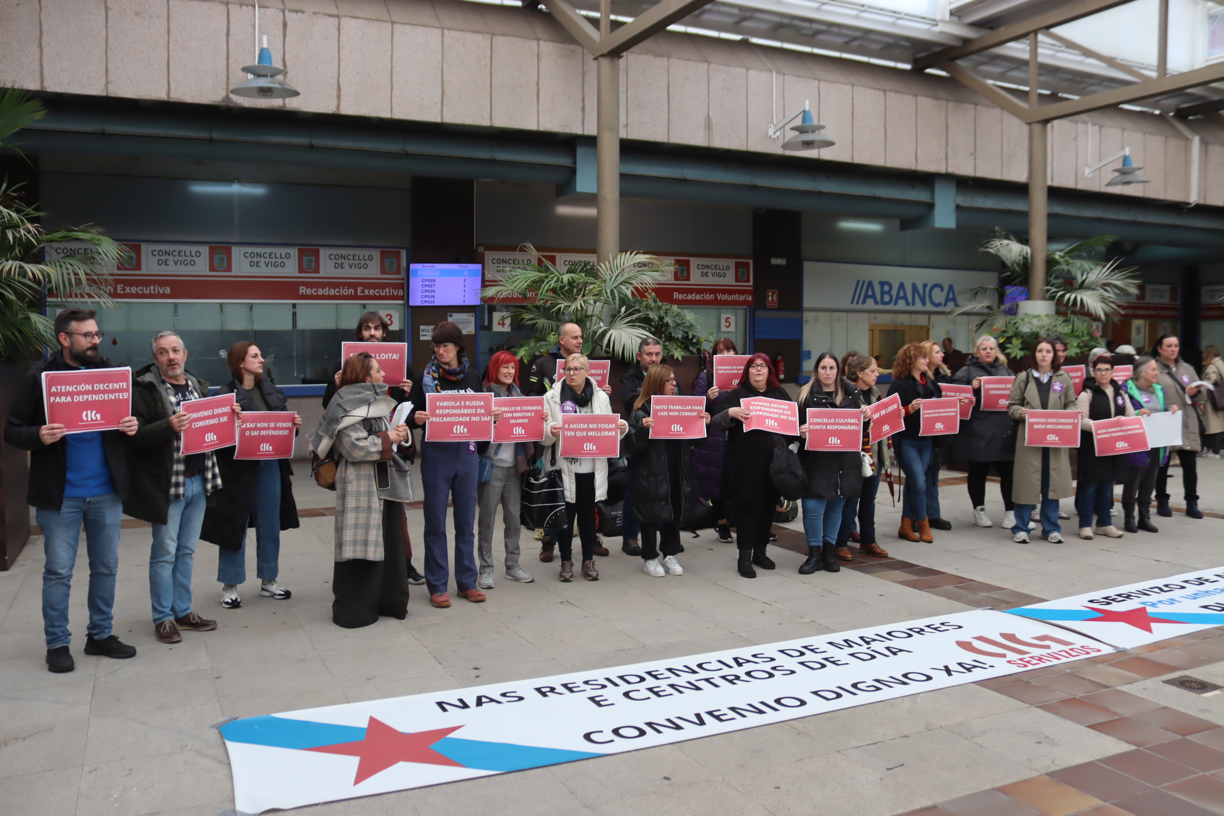Trabajadores y delegados sindicales de la CIG en servicios de ayuda en el hogar y en residencias y centros de mayores privados han llevado a cabo protestas en varios municipios gallegos este miércoles para demandar condiciones laborales «dignas».