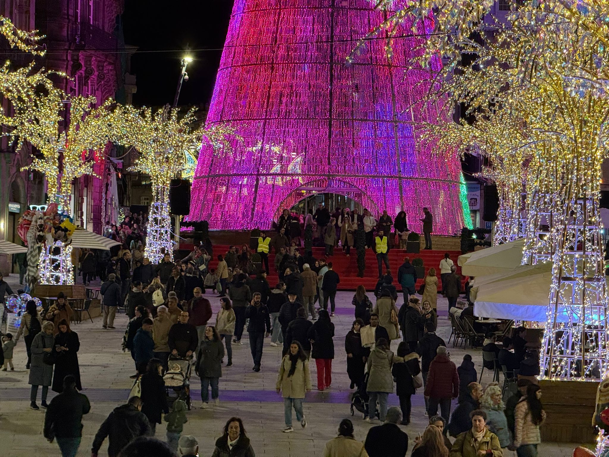 El árbol gigante de la Porta do Sol tuvo también una importante afluencia de personas que, de forma pausada y sin las masificaciones de otros años, donde se hacía prácticamente imposible caminar, pudieron gozar de las luces y hacerse sus selfies sin problemas.
