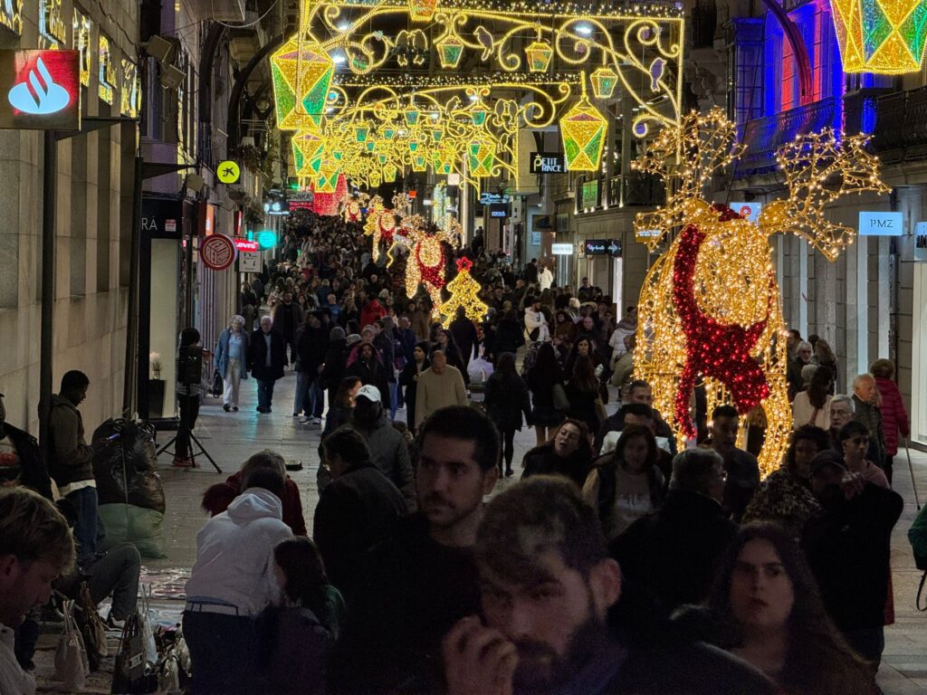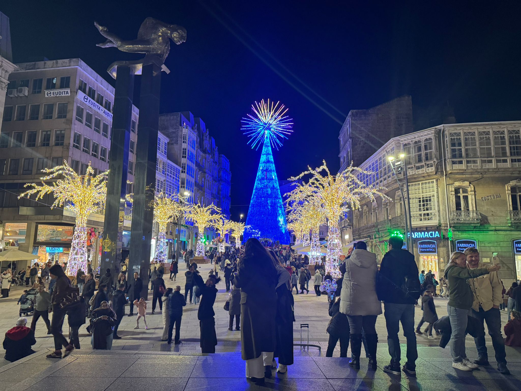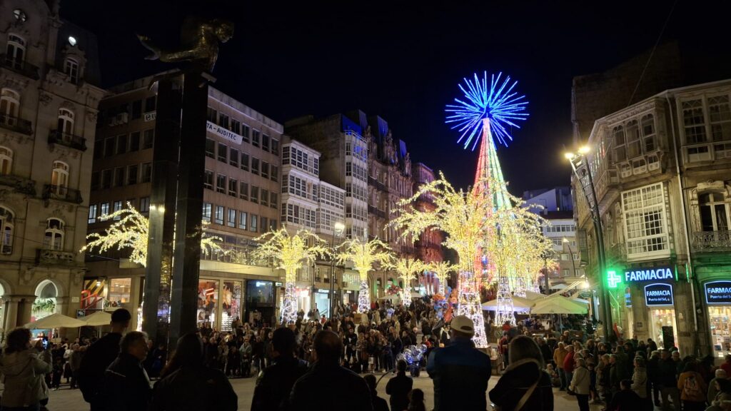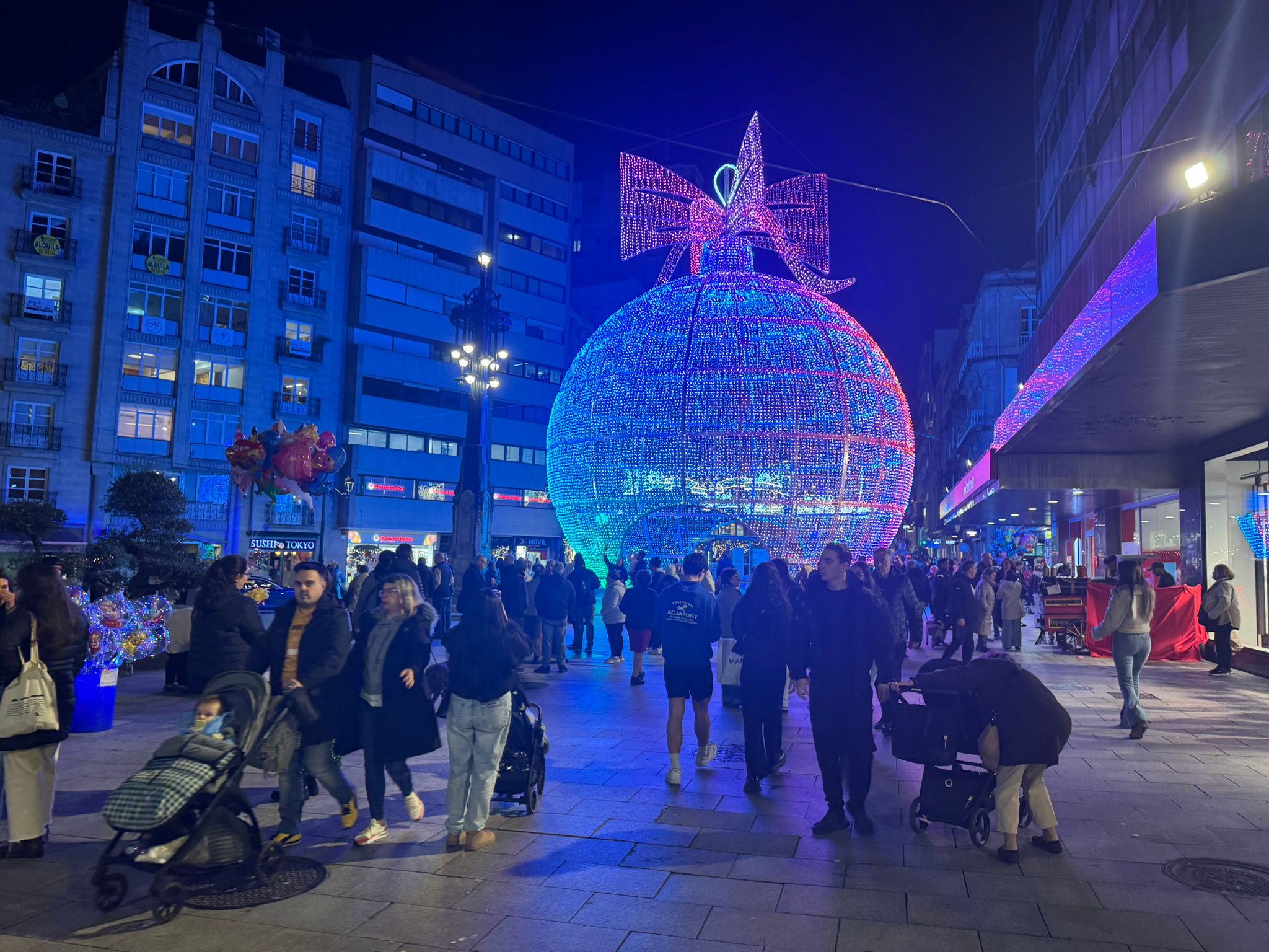 Con todo, en el día de hoy, y pese a ser lunes, el centro de la ciudad -sobre todo la zona de Príncipe– se vio abarrotada de personas que se echaron a las calles de Vigo para poder observar las luces y los ornamentos de la Navidad de este año 2025.