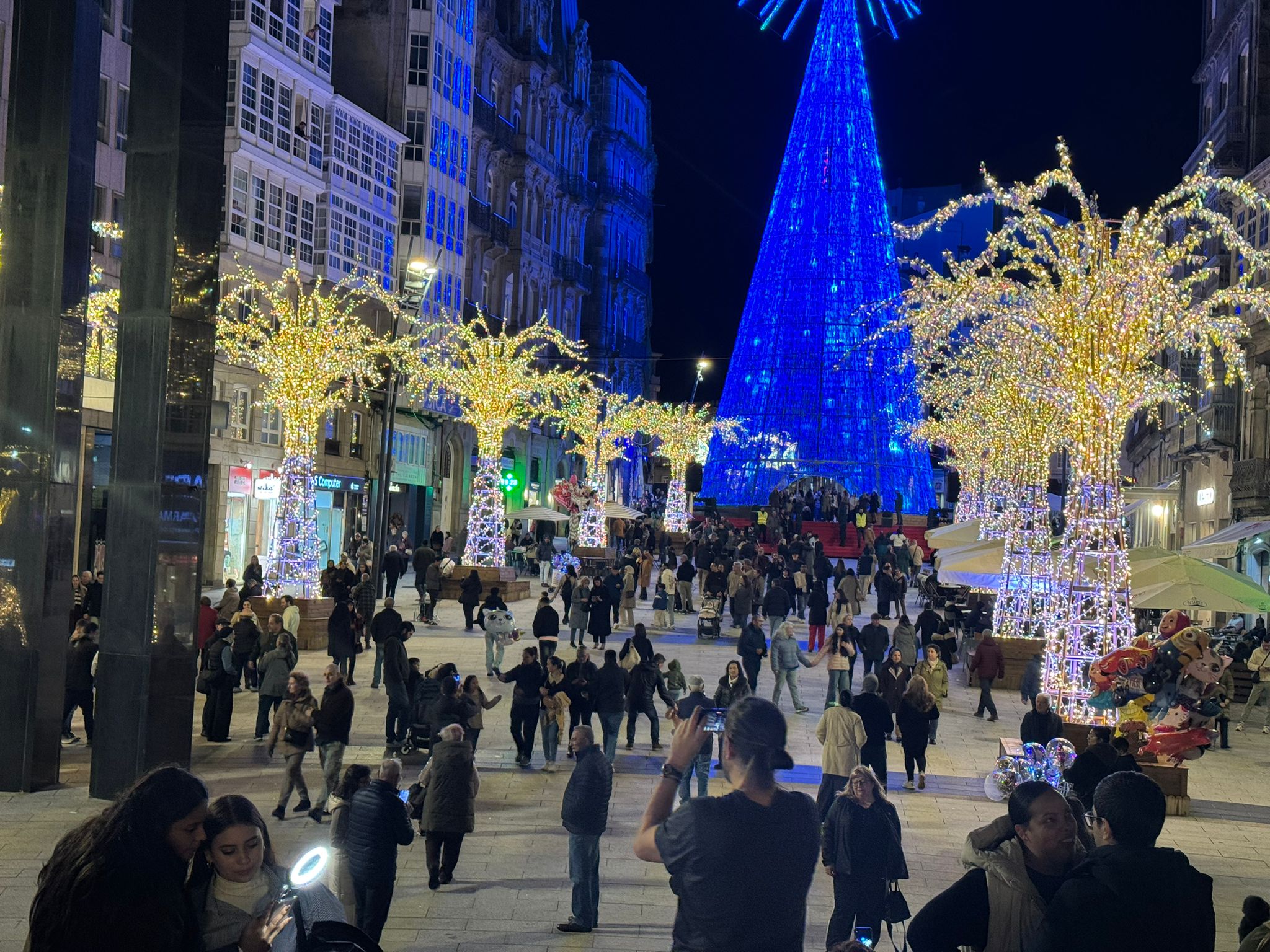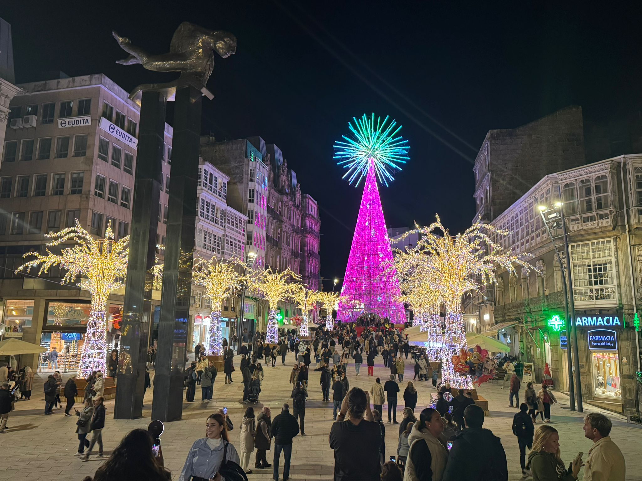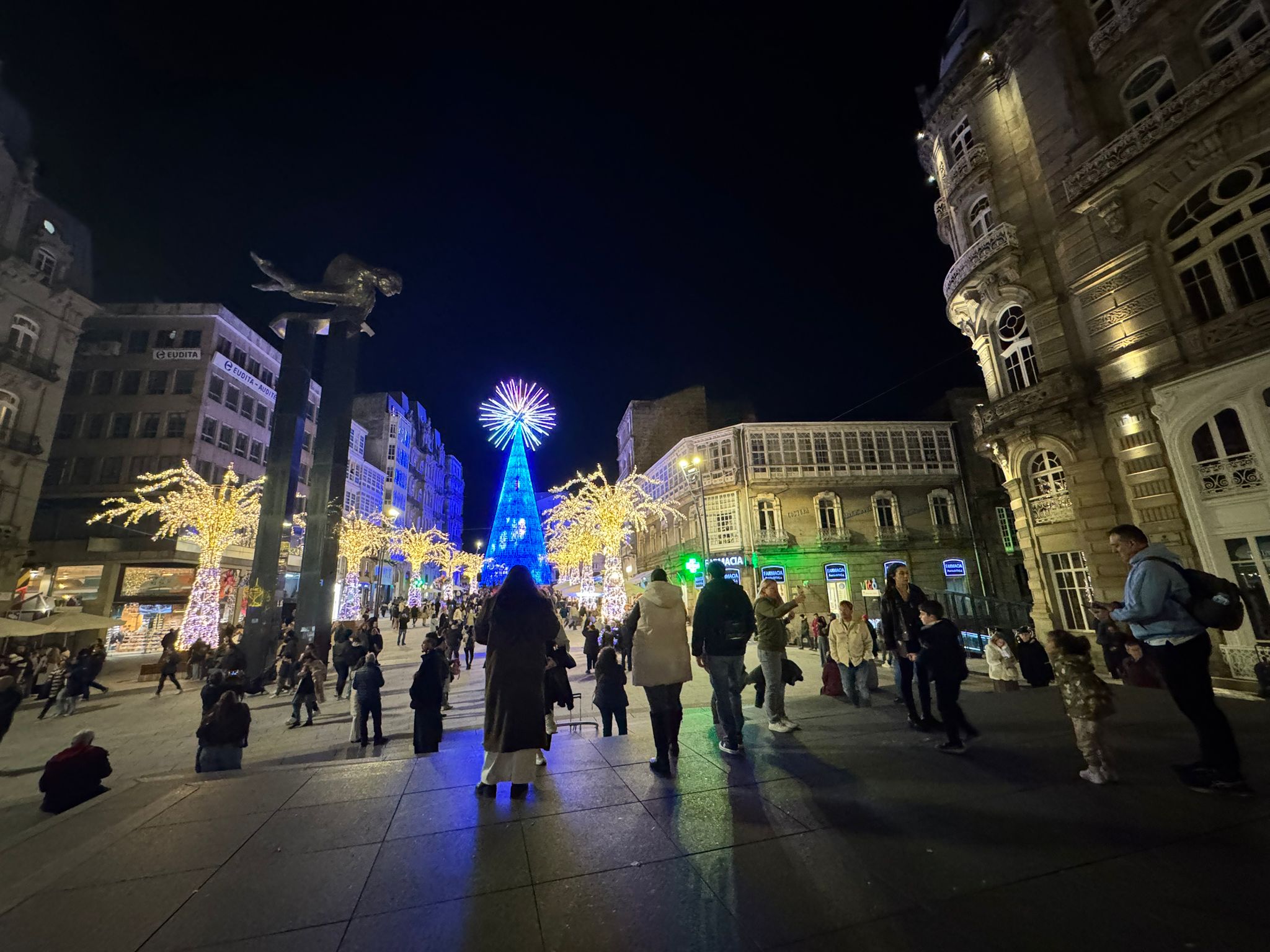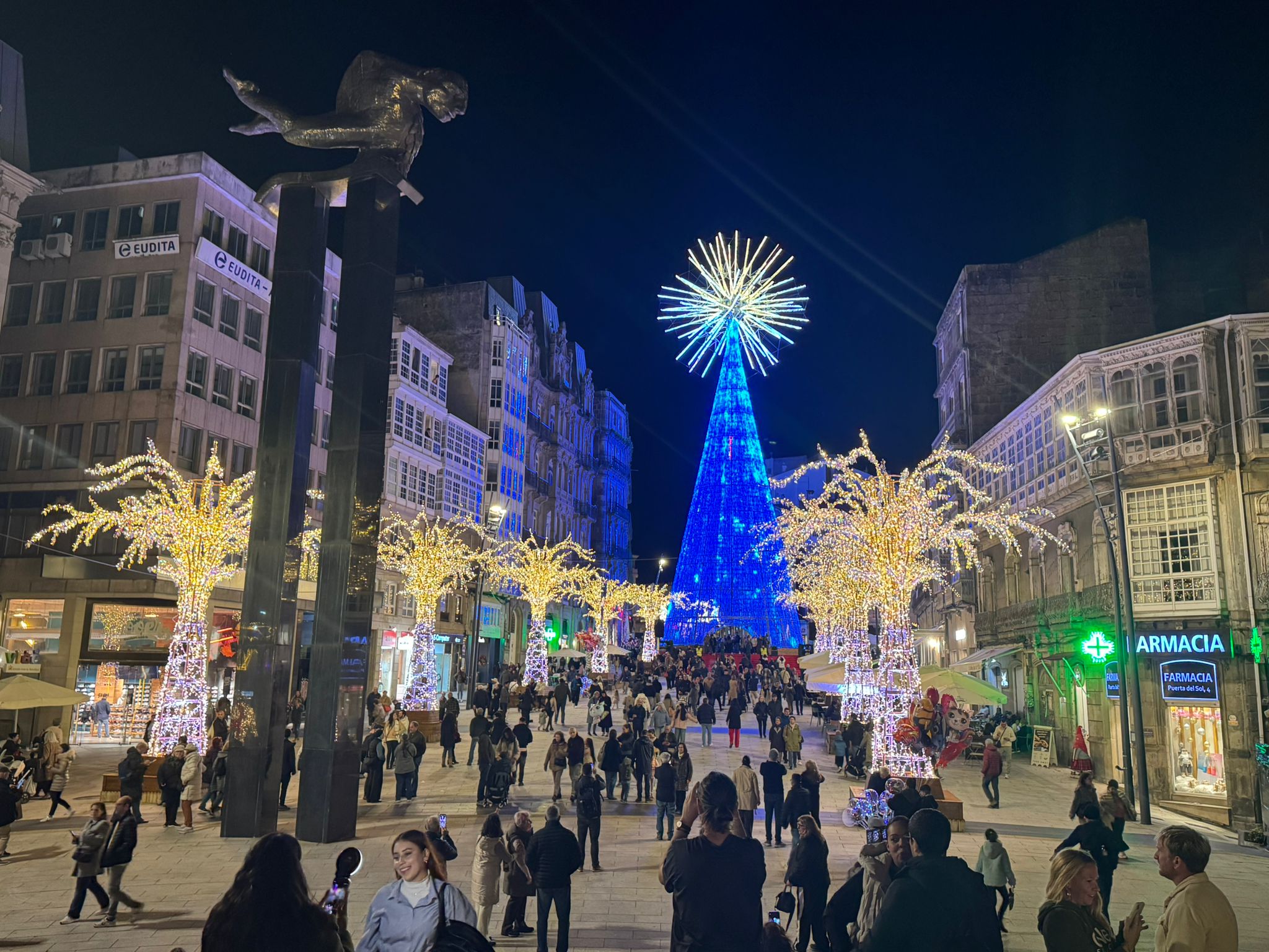 Con todo, en el día de hoy, y pese a ser lunes, el centro de la ciudad -sobre todo la zona de Príncipe– se vio abarrotada de personas que se echaron a las calles de Vigo para poder observar las luces y los ornamentos de la Navidad de este año 2025.