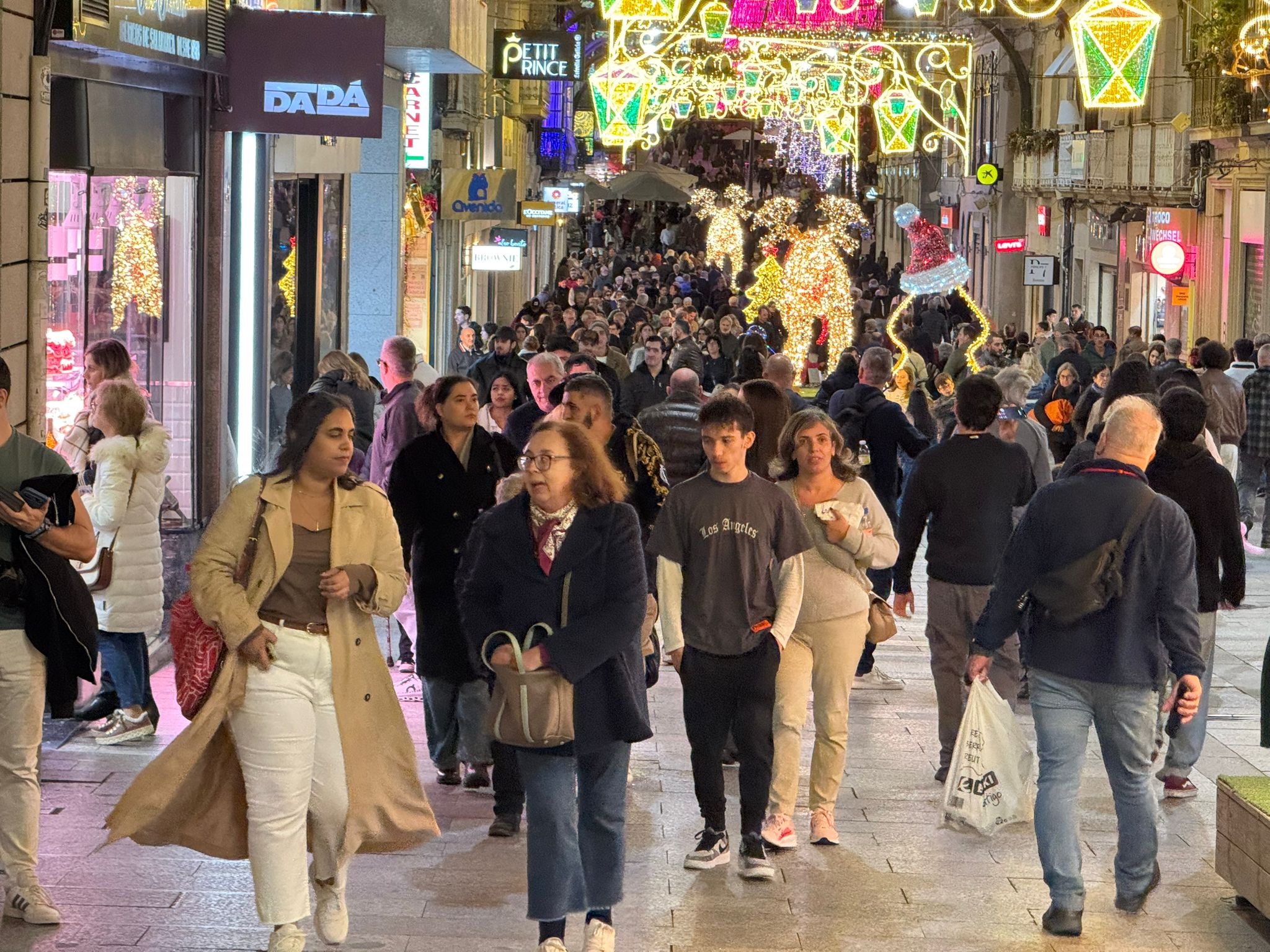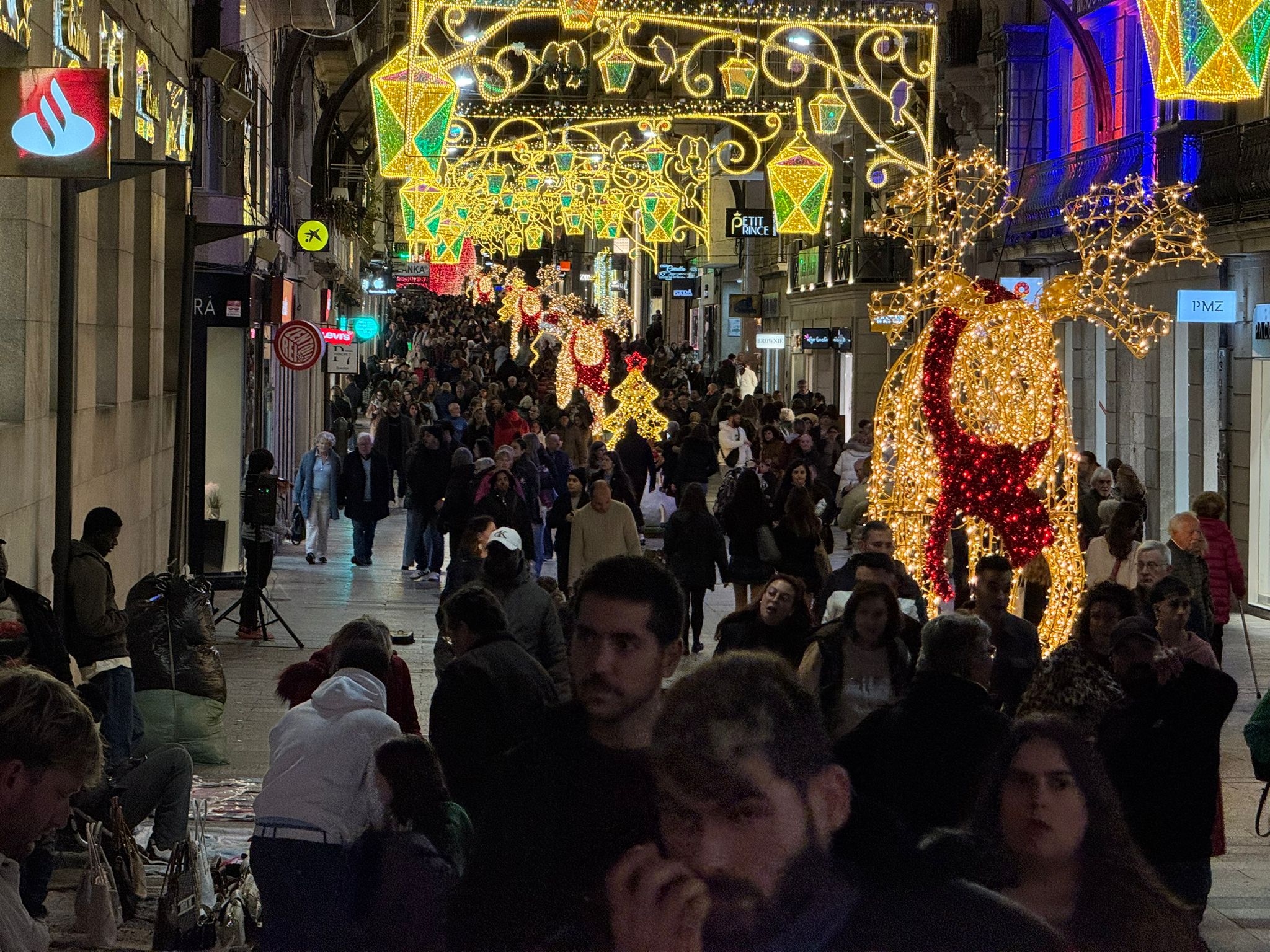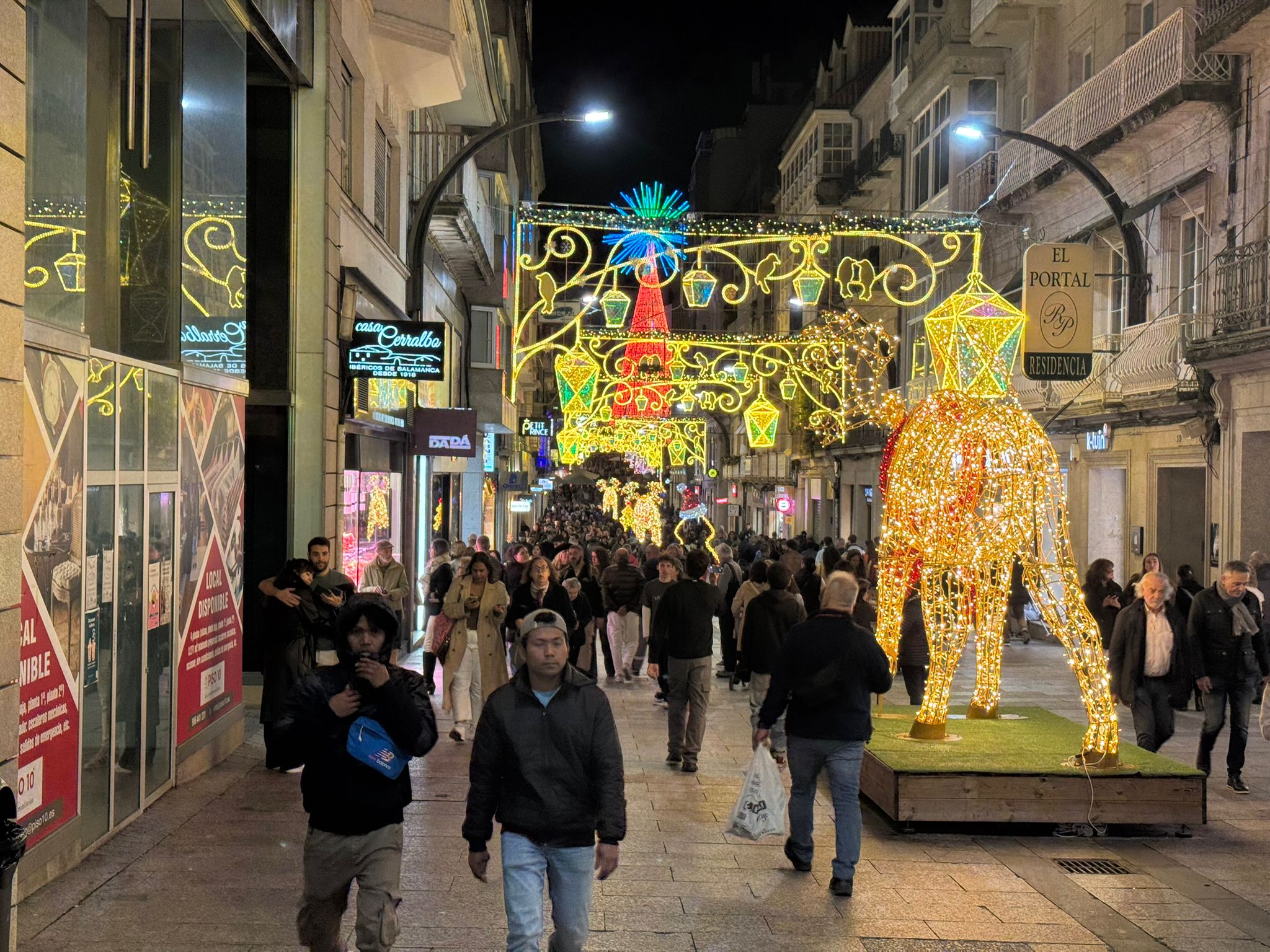 Primer lunes para disfrutar (sin masificaciones) de la Navidad de Vigo: Príncipe abarrotado y circulación fluida