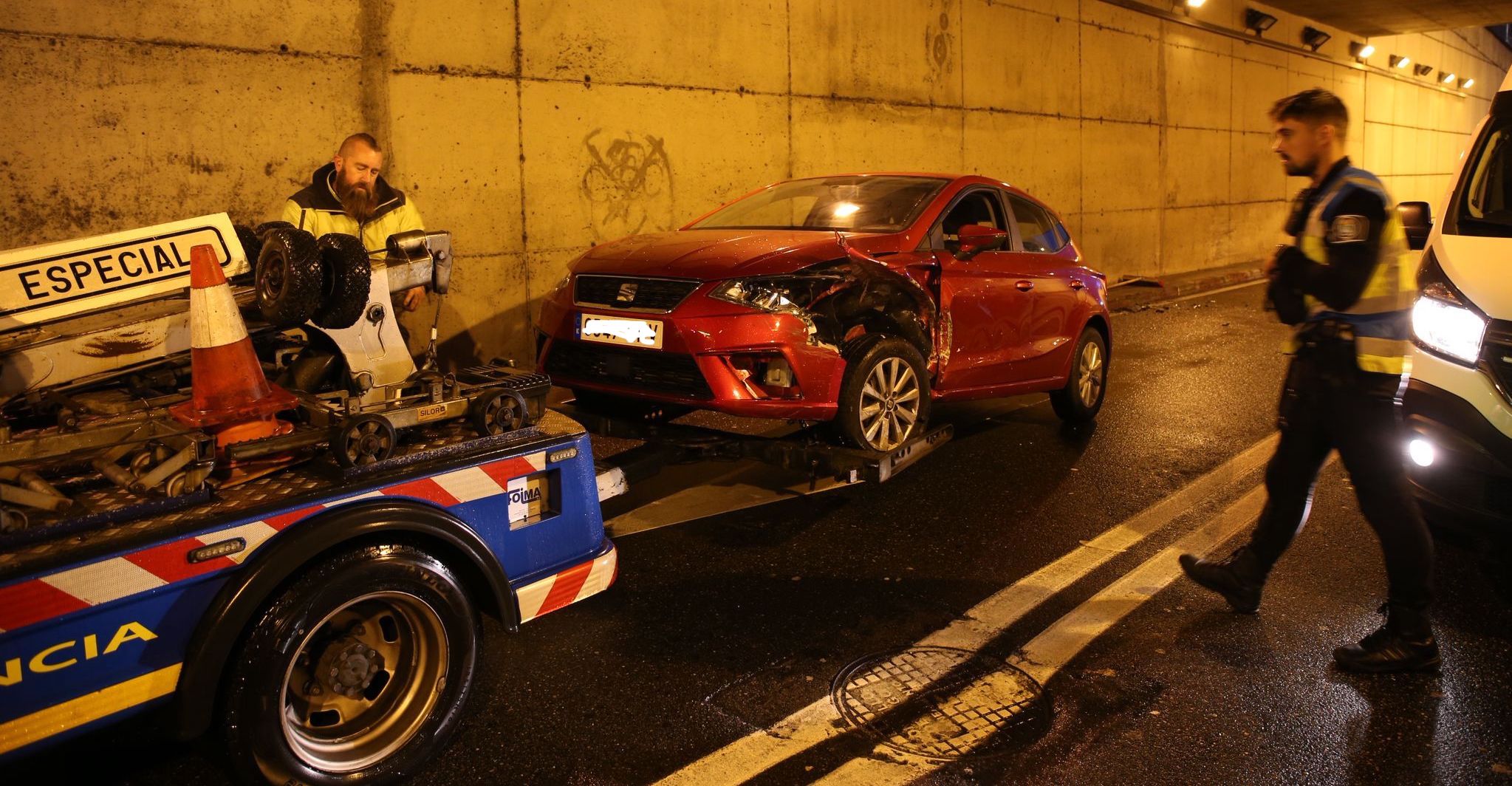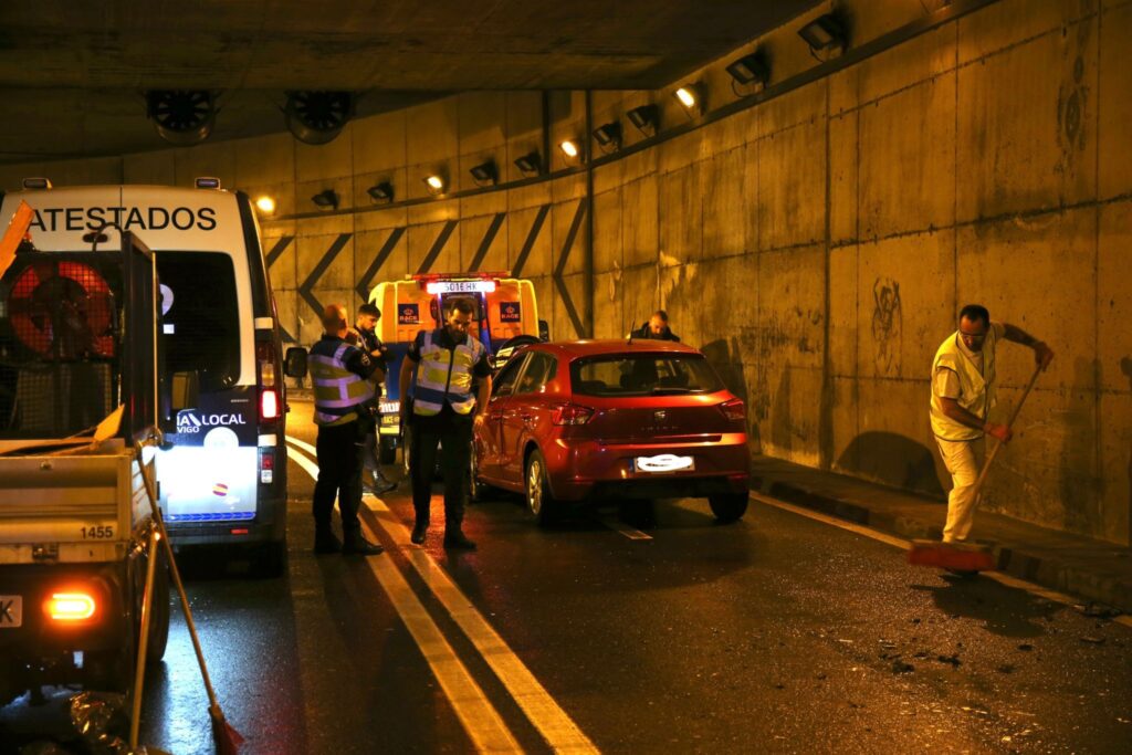 Largas colas y tráfico lento tras una colisión múltiple en el túnel de A Madroa