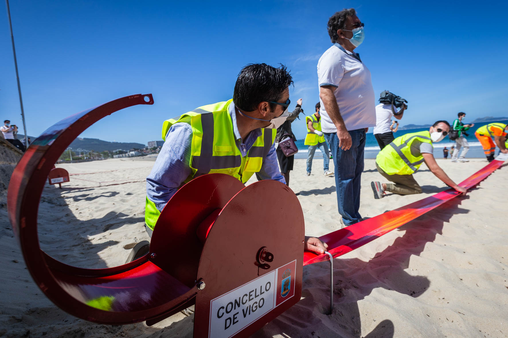 Samil y O Vao estrenarán finalmente su sistema de parcelación de la arena este domingo 21 de junio por la mañana. Con unos días de retraso con respecto a lo anunciado inicialmente -15 de junio-, las dos principales playas de Vigo contarán con esta fórmula de división en cuadrículas coincidiendo con el primer día del verano.