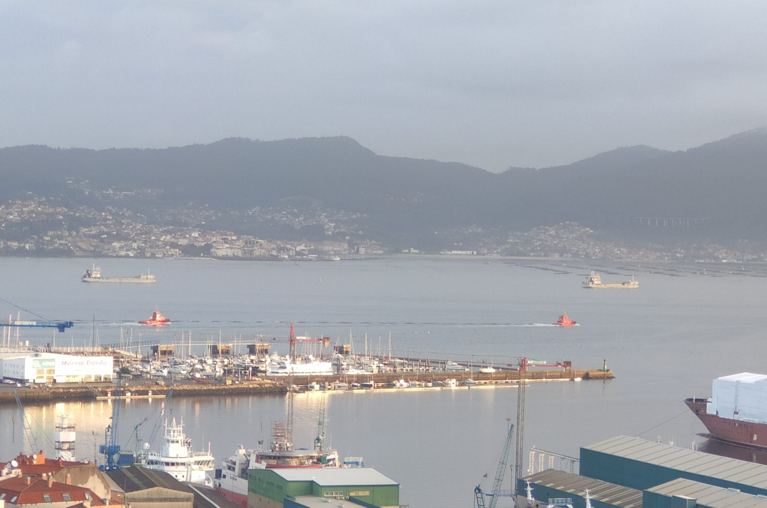 La situación es bien distinta en el mar, donde se mantiene activa la alerta naranja en las Rías Baixas, tanto para el miércoles como para el jueves. Se esperan olas de entre 5 y 6 metros debido al temporal costero que causarán las borrascas situadas en el Atlántico Norte. Este miércoles por la mañana ya era posible ver barcos fondeados en plena ría de Vigo, a refugio de esa marejada.
