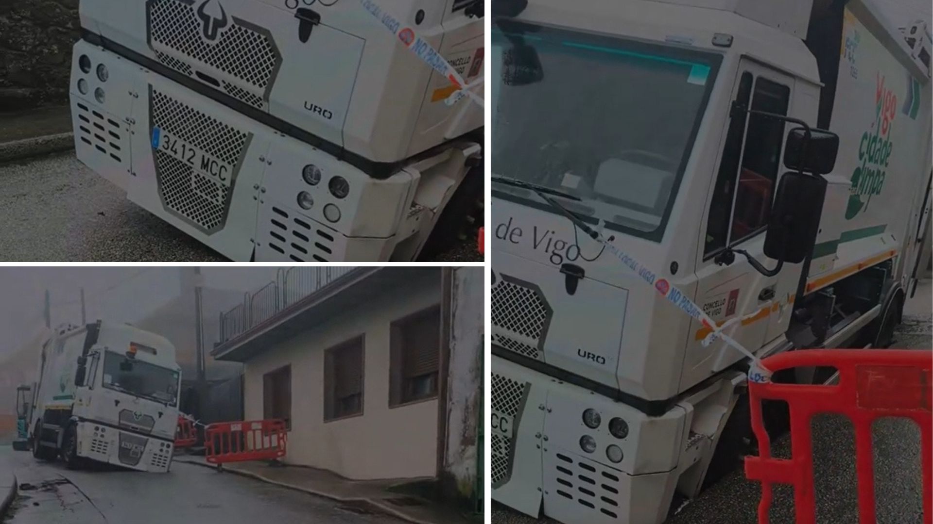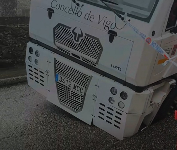 El incidente se registró a las 10:10 horas, momento en el que la Sala de Comunicaciones de la Policía Local de Vigo recibió el aviso de alerta. Al desplazarse al lugar, los agentes confirmaron la gravedad de la situación: el eje delantero del vehículo pesado se había hundido en el terreno, dejando el camión peligrosamente inclinado y bloqueando por completo la circulación en este vial.
