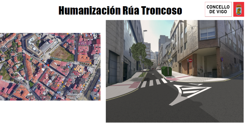 En el centro de la ciudad: cuarta fase de la humanización de Gregorio Espino (1.600.000 euros), humanización de la calle Valladolid (450.000 euros), nuevo alumbrado del Parque de Castrelos por valor de 623.000 euros, reforma de un tramo de la Estrada Clara Campoamor junto al hospital por un importe de 463.000 euros; las humanizaciones de García Barbón, entre Rosalía de Castro e Isaac Peral (2.197.000 euros), Tercio de Afora (274.000 euros), Julia Minguillón y Vista Alegre (1.070.000 euros), calle Troncoso (362.500 euros), fase 2 de la calle Colombia (749.000 euros), calle Romil (1.230.000 euros), calle Marín (218.000 euros), calle Rosal (450.000 euros) y sexta y última fase de la calle Aragón (570.000 euros).