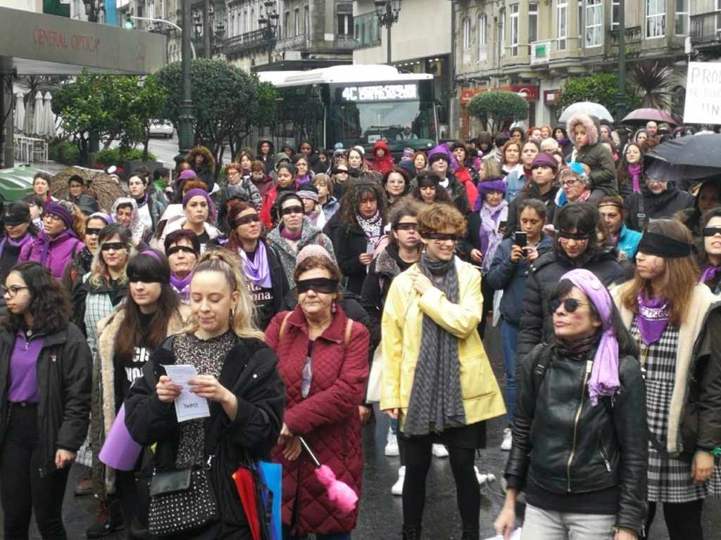 Así, la jornada se inició con una intervención de calle a las 12:00 horas en La Farola de Urzaiz. Fue una participación masiva de mujeres en la interpretación de “un violador no teu camiño”, intervención popularizada por las mujeres chilenas y viral en el resto del mundo.