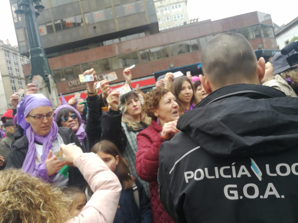 Durante el acto agentes de la Policía Local identificaron a varias de las personas que se concentraban, lo que generó protestas entre las manifestantes.