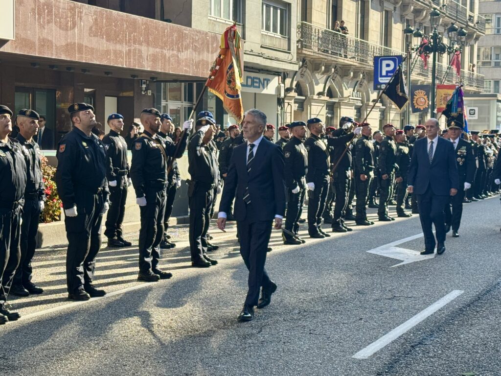 Tras una introducción musical llevada a cabo por la banda sinfónica de la Policía Nacional, hizo su llegada el ministro, entre abucheos de algunos de los asistentes en el marco de una concentración del sindicato Jupol. Marlaska ha pasado revista a lo largo de la calle García Barbón de Vigo, donde se ha llevado a cabo el acto y que estos días ha estado sumida en importantes restricciones de tráfico provocando que el centro de la ciudad se convirtiese en una ‘ratonera’ en hora punta, sobre todo en la jornada de ayer.