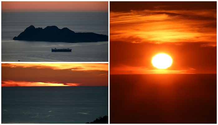 El cambio horario que sufrimos en la Península en la madrugada de este pasado domingo nos deja ya puestas de sol más adelantadas. Y así fue este primer lunes con el nuevo horario de invierno. A las 18:35 horas Lorenzo se iba escapando hasta posarse sobre la Ría de Vigo y dejar una imagen única y sublime pocos minutos después.