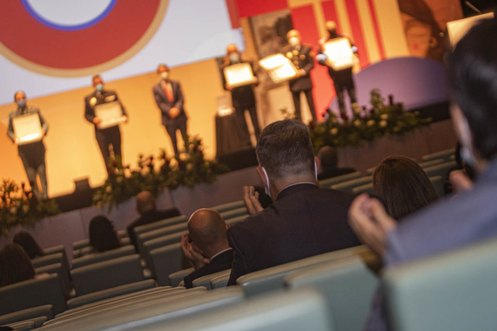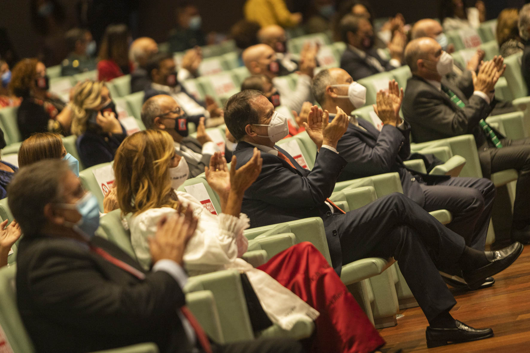 El acto estuvo marcado por las medidas de seguridad a las que obliga el Covid-19. Distancias de seguridad y aforo reducido fueron obligatorios en una gala muy emotiva. Los premios al deportista Alejandro Gómez, al policía Iván Álvarez, a los sanitarios y a los cuerpos de seguridad se convirtieron en un homenaje a sus trayectorias y sus esfuerzos vitales.