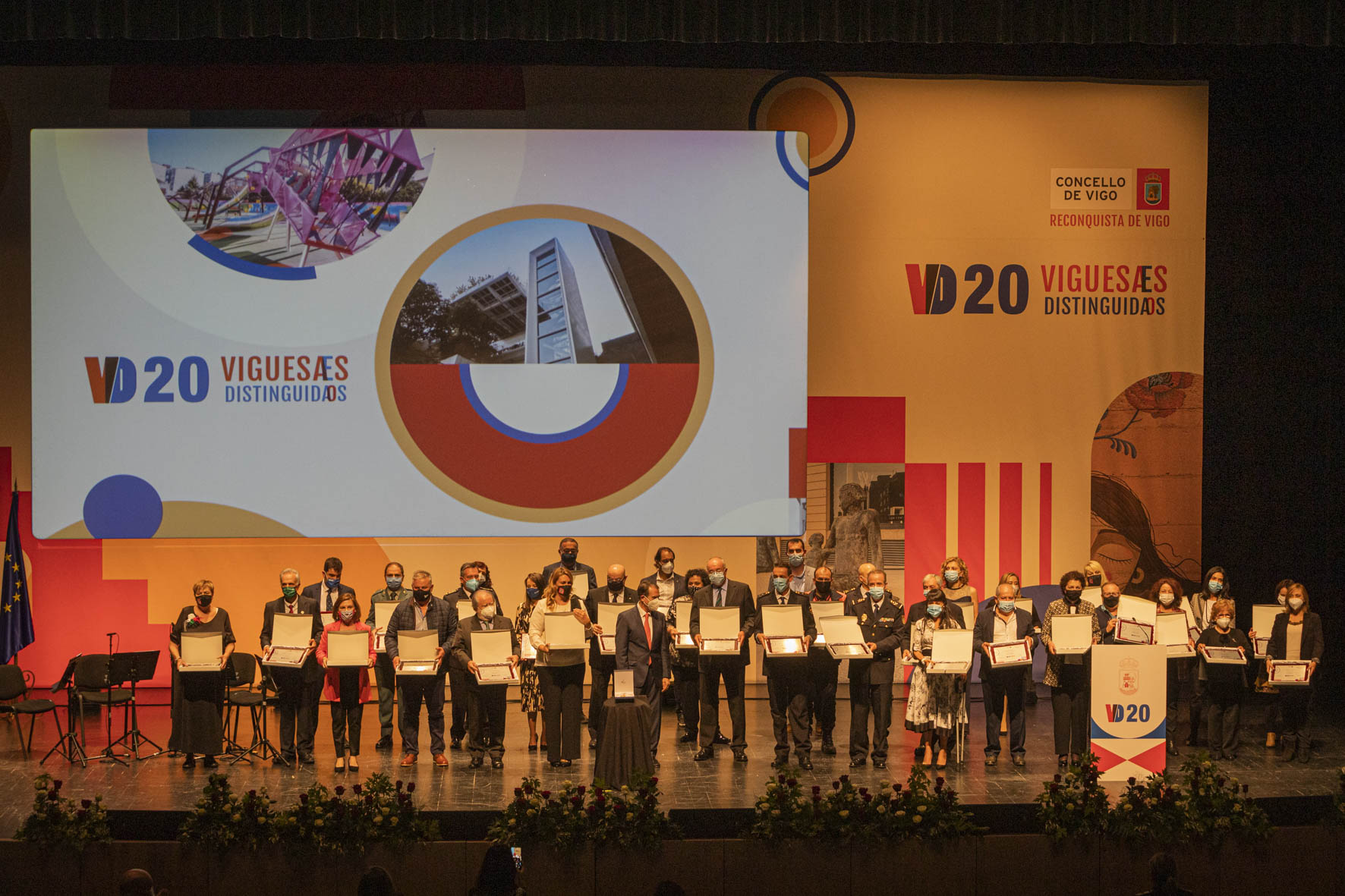 Ademas de la Medalla de la Ciudad, recibieron el galardón de Vigueses Distinguidos el juez jubilado Julio Picatoste, la periodista del corazón Carlota Corredera, Iván Álvarez, policía nacional herido en los disturbios de Cataluña, el Club Peña Trevinca, que cumple 75 años; Alejandro Gómez, atleta; la ONG Solidariedade Galega co Pobo Saharaui, los cuerpos de la Policía Nacional, Local, Autonómica, Guarda Civil y Protección Civil por su labor durante la crisis sanitaria y, por cumplir 50 años o por su “singularidad”, los centros educativos Colexio Saladino Cortizo, o Ceip Santa Mariña, Ceip Valle Inclán, Ceip Sello, Sárdoma Moledo, Ceip Paraixal, Ceip Javier Sensat, Ceip Igrexa Candeán, Ceip A Paz Tintureira, Ceip Emilia Pardo Bazán, Colexio San Fermín, Colexio Atalaya Cantrabria, Colexio Possumus, IES Santo Tomé de Freixeiro, IES Valentín Paz Andrade e IES Castelao.