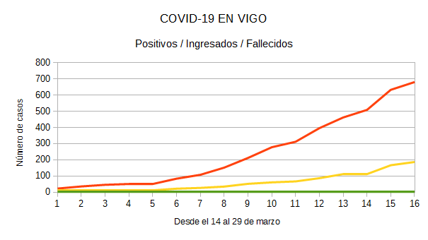 En el último informe de la Conselleria se recoge que en el área sanitaria de Vigo hay 681 pacientes positivos, de los que 187 están ingresados (108 en el Álvaro Cunqueiro, 68 en Povisa y 11 en Fátima) y 494 en domicilio. Del total de los ingresados hay 25 en UCI (2 en Fátima, 7 en Povisa y 16 en el Cunqueiro). El total de altas contabilizadas a día de ayer, sábado, es de 31.