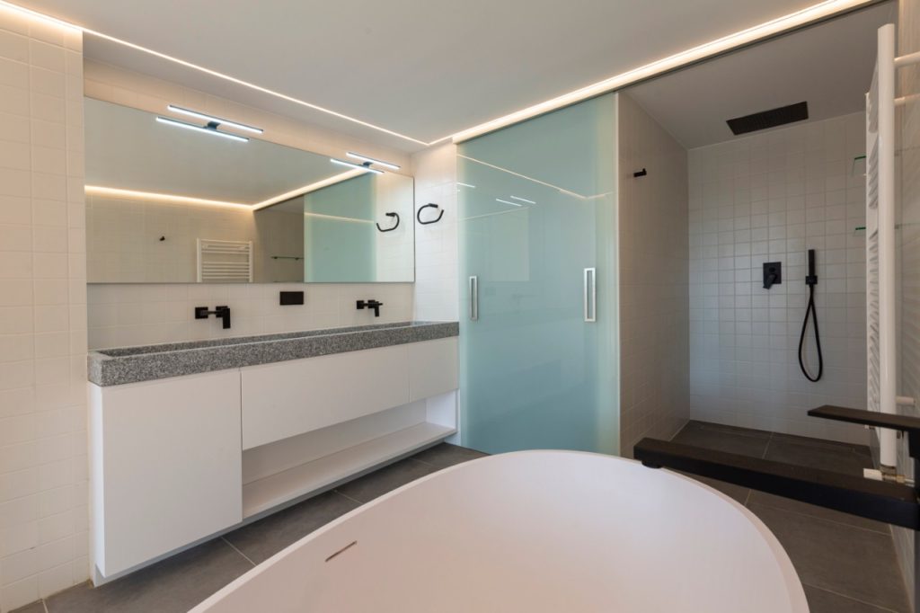 Conseguir la certificación fue todo un reto ya que se partía de un edificio entre medianeras con protección estructural. Por ello, se realizó un refuerzo muy delicado en la estructura, lo que conllevó un especial cuidado en todos los detalles de la hermeticidad. A la hora de rehabilitar se tuvo en cuenta en todo momento la estética del entorno de la parte baja de la calle Colón que marca claramente el diseño de la propia entrada y distribución de las viviendas. Al haber una vivienda por planta se distribuyeron en zona de día y noche con una distribución longitudinal en la que cada habitación tiene su propio baño y vestidor.