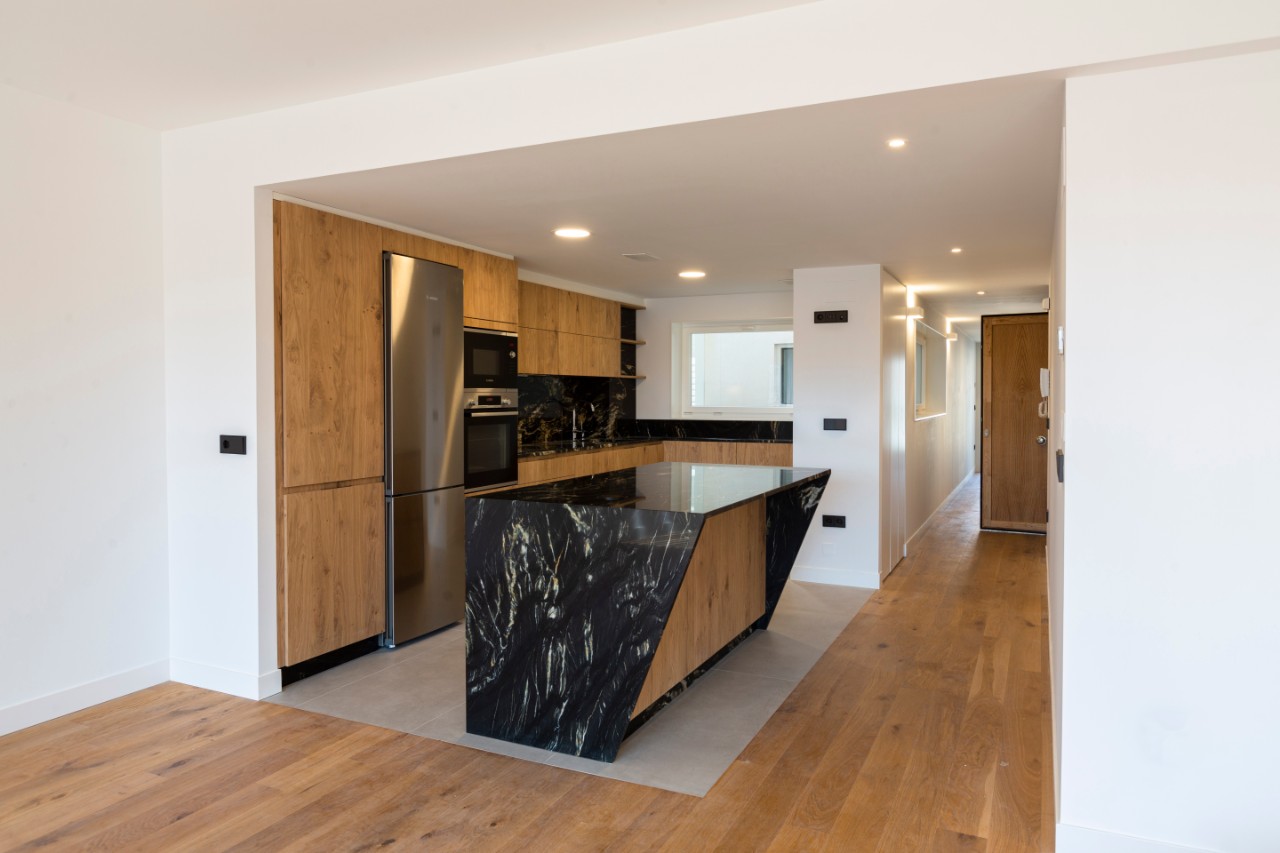 Conseguir la certificación fue todo un reto ya que se partía de un edificio entre medianeras con protección estructural. Por ello, se realizó un refuerzo muy delicado en la estructura, lo que conllevó un especial cuidado en todos los detalles de la hermeticidad. A la hora de rehabilitar se tuvo en cuenta en todo momento la estética del entorno de la parte baja de la calle Colón que marca claramente el diseño de la propia entrada y distribución de las viviendas. Al haber una vivienda por planta se distribuyeron en zona de día y noche con una distribución longitudinal en la que cada habitación tiene su propio baño y vestidor.