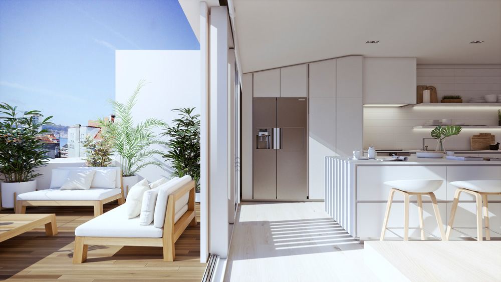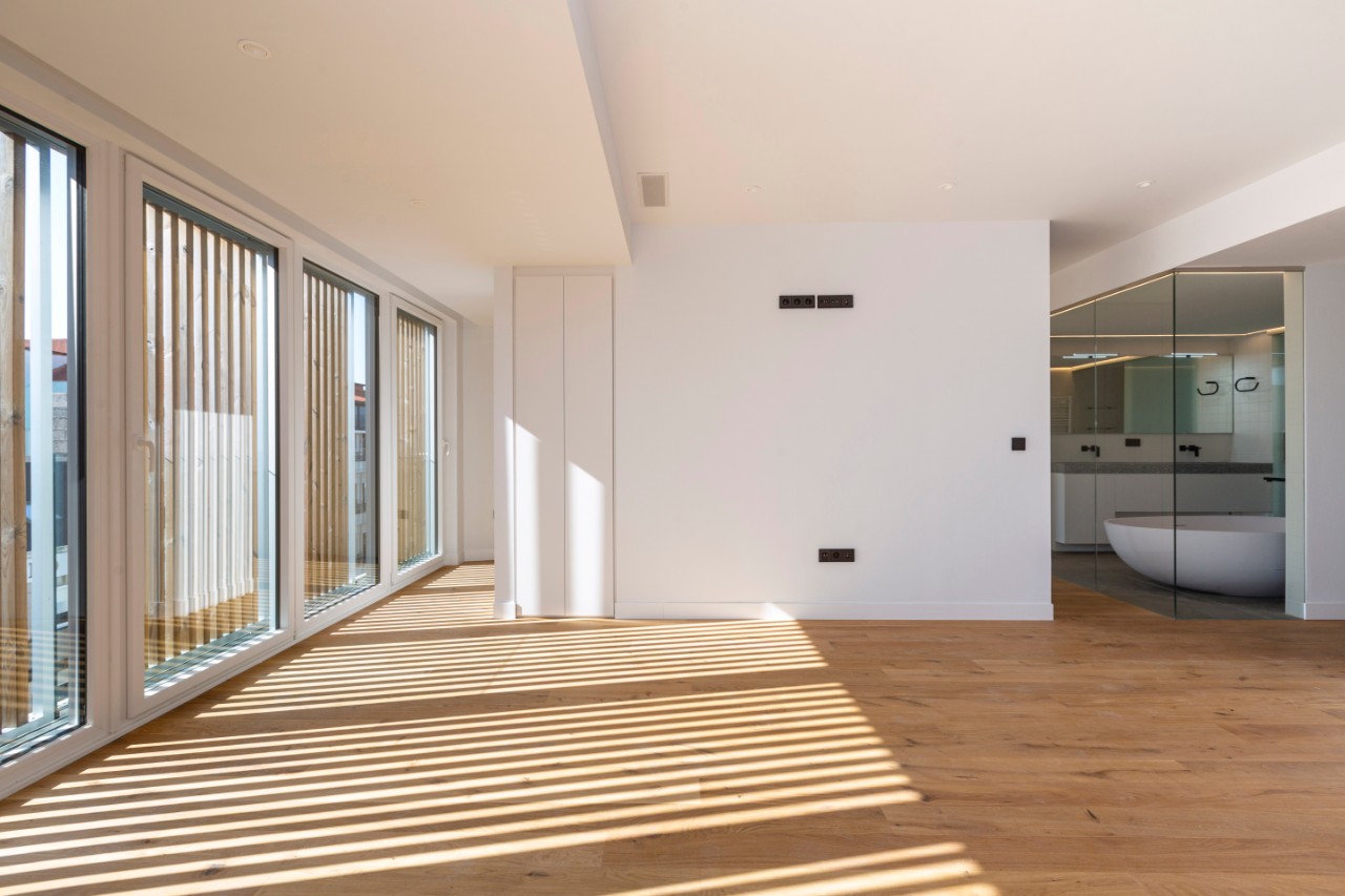El inmueble cuenta con siete viviendas de lujo, una por planta y un tríplex de más de 350 metros cuadrados, con una terraza panorámica. Todas ellas disponen de aparcamiento semiautomático en la planta baja y bodega, en el sótano. En las viviendas destaca la división entre la zona de día y la de noche, aprovechando la luz natural de la fachada principal para la primera, mientras que la zona de noche está separada por un patio interior. En el diseño de todo el conjunto conviven a la perfección hormigón y madera, para ofrecer un edificio moderno, elegante e innovador en pleno centro de Vigo, a un paso de todos los servicios y a escasos 500 metros del puerto deportivo. Sin duda, unas viviendas de lujo y diseño, pero no es eso lo más importante. La principal característica de Colón 11 es su respeto con el medio ambiente y con la salud, por lo que sus propietarios podrán disfrutar de un aire puro y renovado las 24 horas del día, gracias a su sistema de ventilación y con un consumo energético casi inexistente.