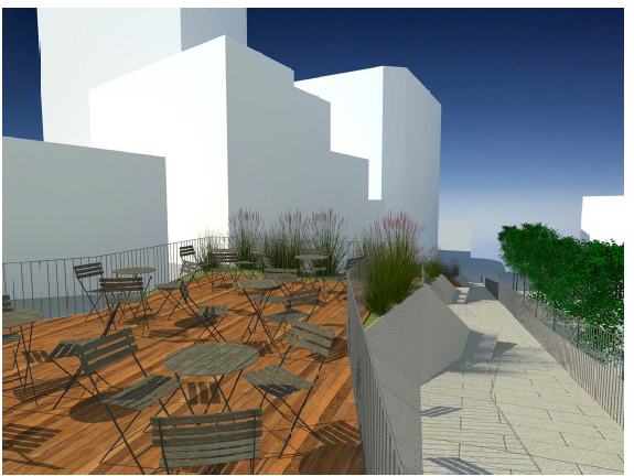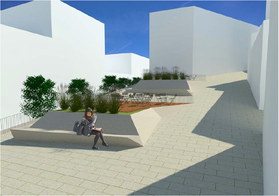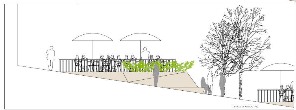 De este modo, y teniendo en cuenta la gran pendiente de la calle, una de las cuestas más históricas de la ciudad, se propone la creación de tres elementos que «horizontalizan una porción de suelo para poder hacerlo practicable», algo similar a las actuales terrazas que usan los bares y restaurantes de la zona pero que, según el proyecto, se ampliarán puesto que solamente se dejará un solo carril de circulación restringido para vehículos.