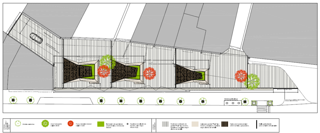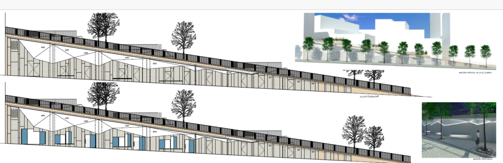 Y teniendo en cuenta el actual estado de «semi abandono y semi ruina interior», ofreciendo así una «mala imagen urbana de cara a la ciudad», Sirvent propone una «intervención radical» que transforme» los espacios y su relación con la calle poniendo el foco, sobre todo, en el plano de la fachada que la conforma como un «cerramiento acabado con una piel de dos materiales«.