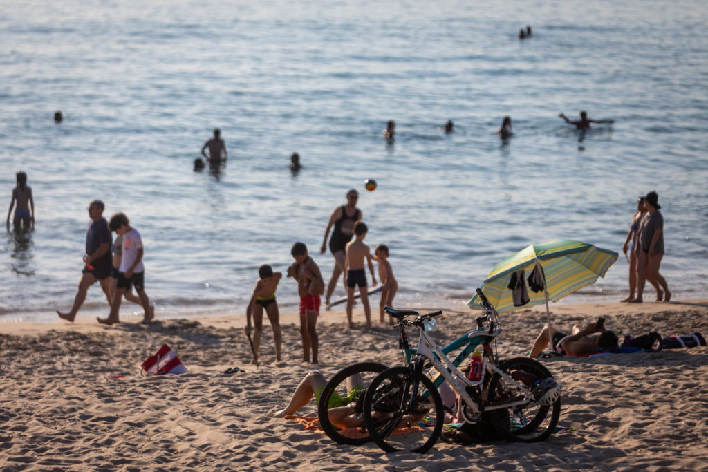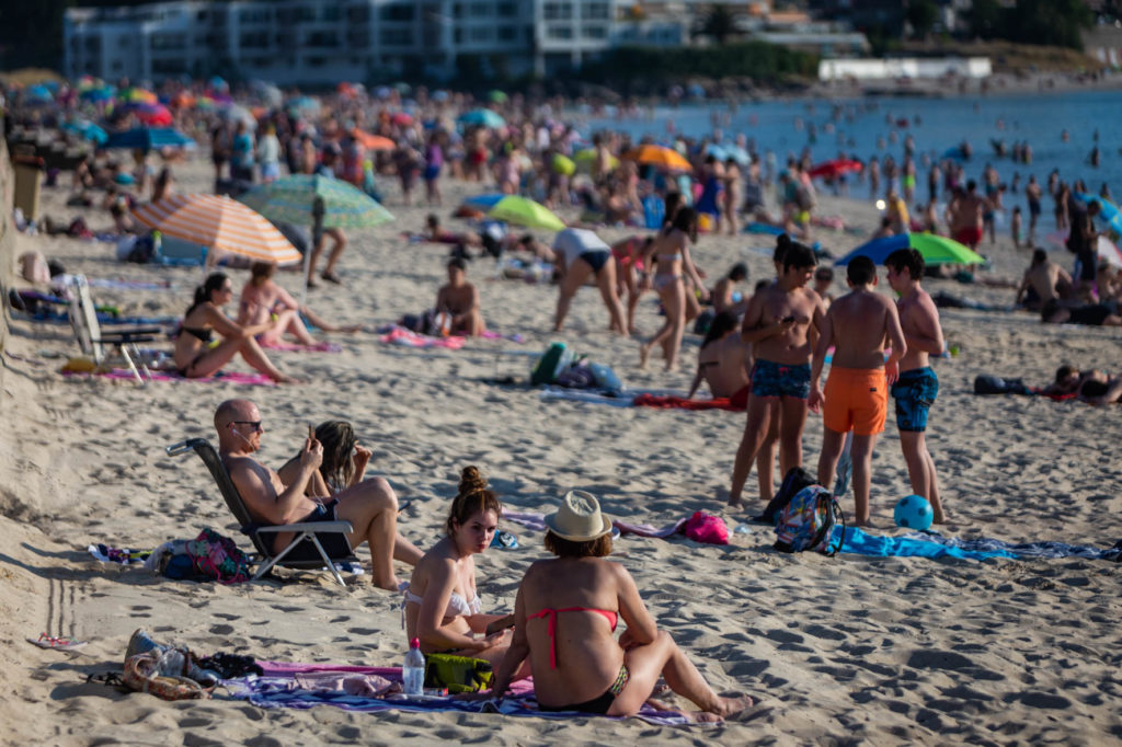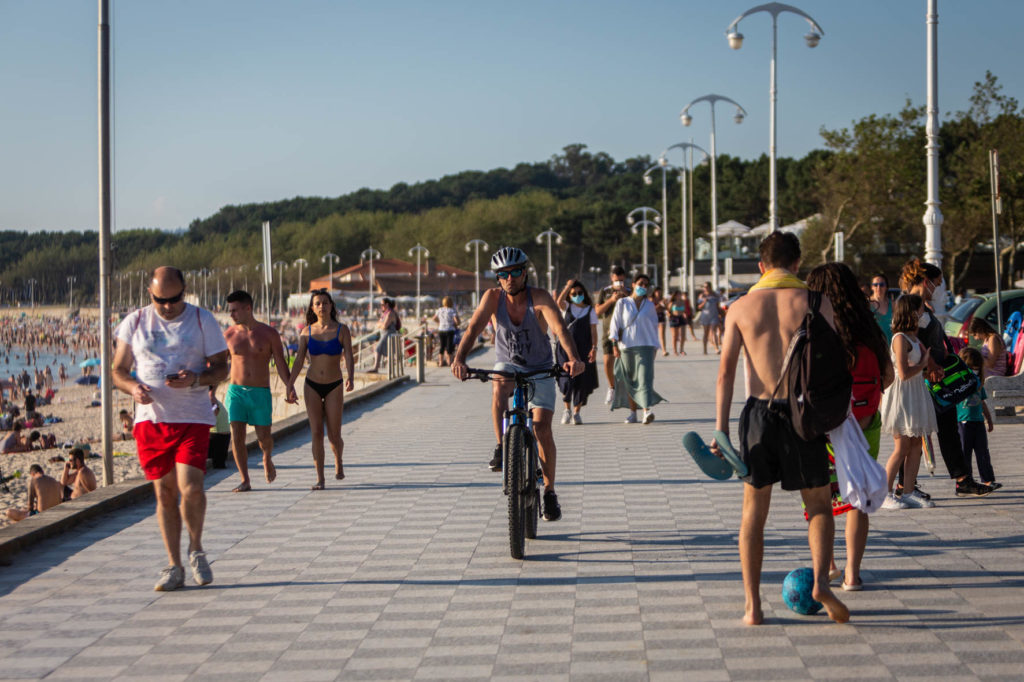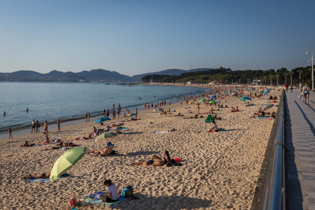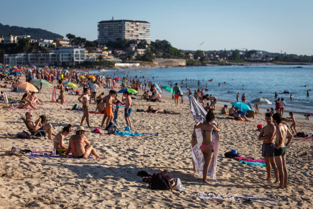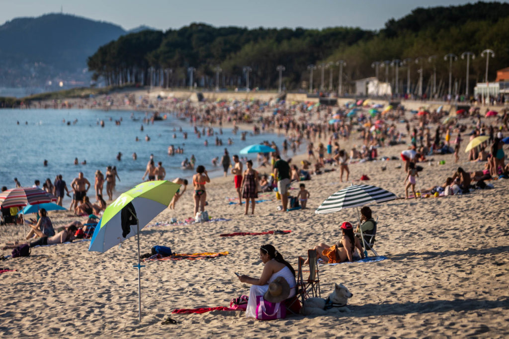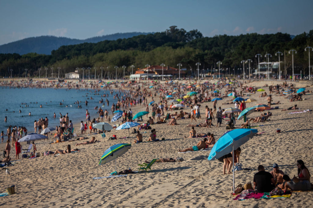 Las playas de Vigo se abarrotaron, especialmente Samil y O Vao, con sus bañistas guardando las medidas de seguridad en la gran mayoría de los casos. Según informó este miércoles Meteogalicia en su boletín meteorológico, se mantendrá activado el aviso de nivel amarillo para este jueves por la entrada de aire africano que ha elevado las temperaturas hasta los 34,7ºC en O Viso (Reondela).