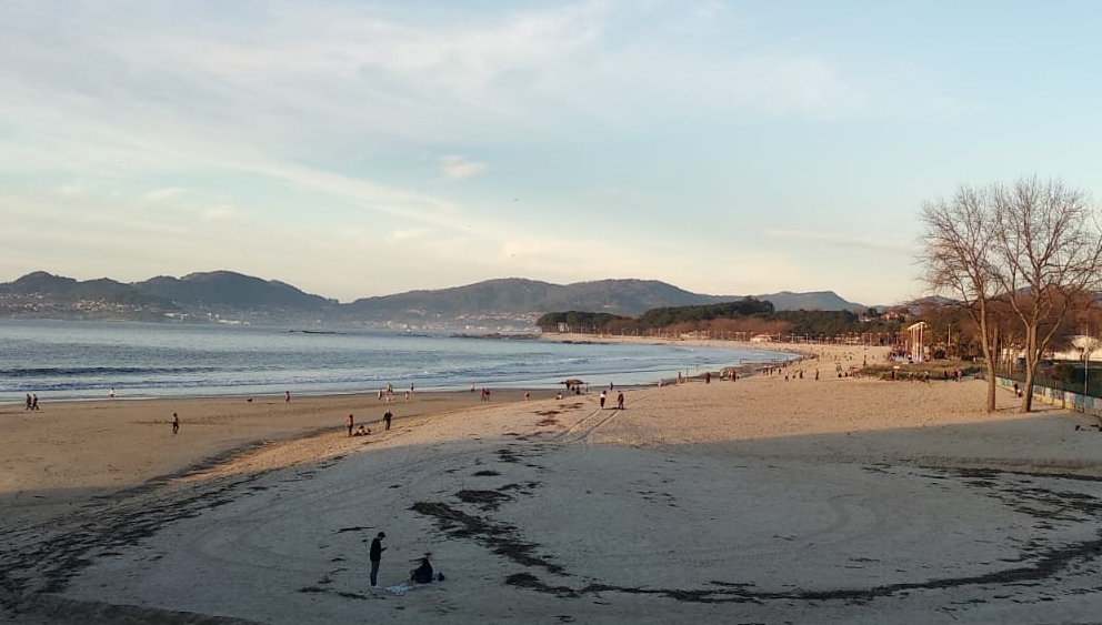 En la playa en pleno invierno. A 3 de febrero. Suena a chiste o a reto para osados pero ha sido la estampa que se ha podido ver este lunes en Vigo. A mediodía apenas se observaba a unos pocos paseantes con sus perros pero a primera hora de la tarde la afluencia de personas en Samil fue creciendo poco a poco hasta ver el paseo muy concurrido. Incluso algunos atrevidos se pusieron a tomar el sol.