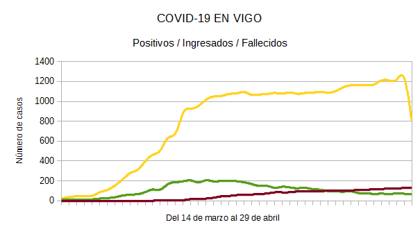 La pandemia del coronavirus registró este miércoles lo que sin duda parece un punto de inflexión en el área sanitaria de Vigo al cerrarse la jornada sin fallecidos por primera vez en un mes. El retroceso de los contagios y fallecidos por Covid-19 es un hecho ya visible en toda España a finales de este mes de abril, también en Galicia y en los hospitales de Vigo.