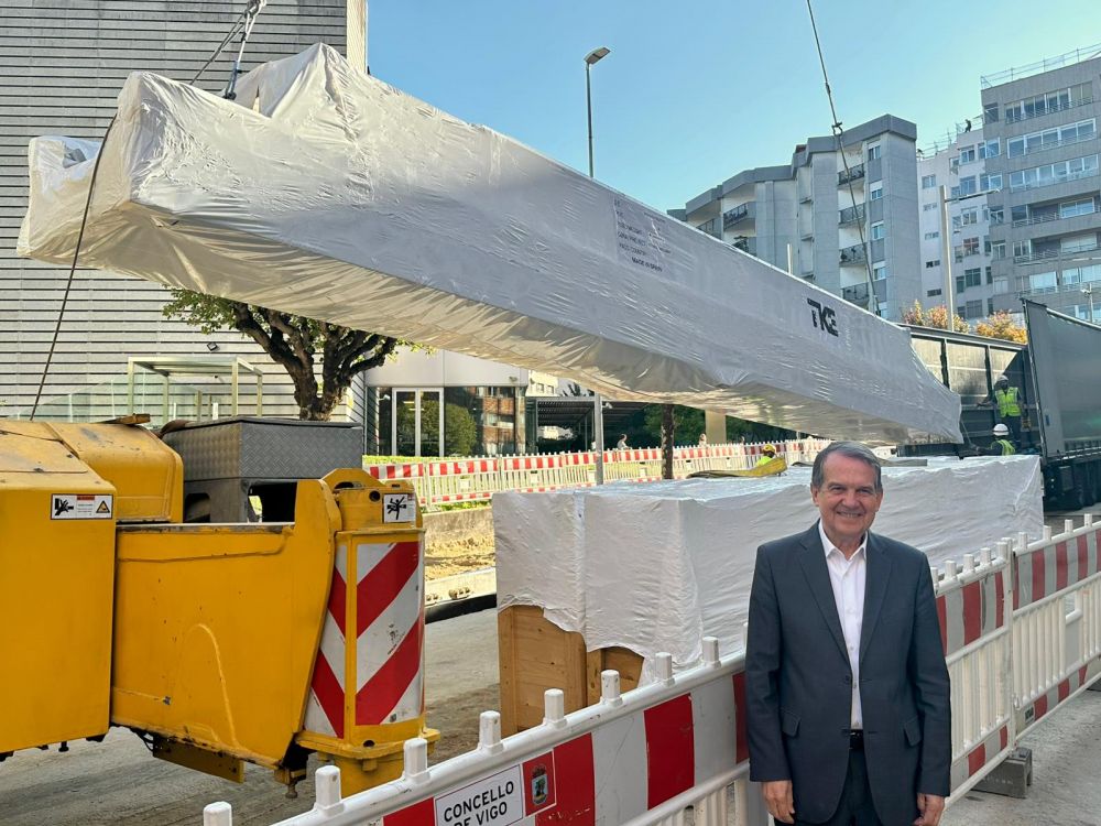 El alcalde Abel Caballero quiso estar hoy en este momento de la obra, recordando que el gobierno local invierte más de 1,5 millones de euros en este nuevo elemento del Vigo Vertical en la zona de As Travesas.