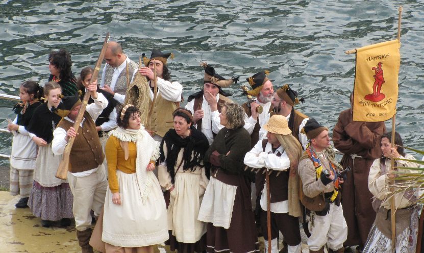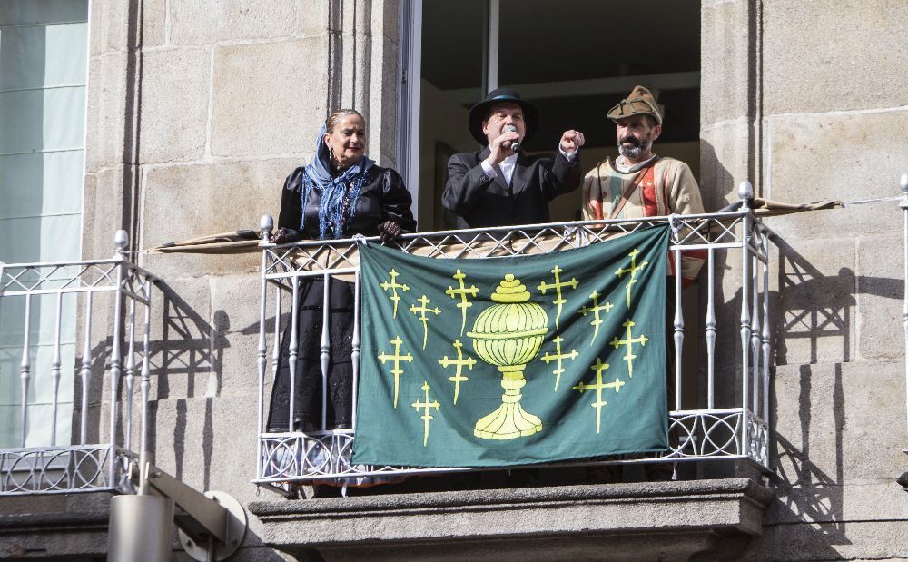 El Casco Vello se convirtió en un gran teatro al aire libre y los personajes históricos fueron encarnados de nuevo por los miembros de la Asociación de Vecinos. Año tras año la escenificación mejora, se depura, y los pequeños detalles también se cuidan. Es el caso del escenario de Porta do Sol, que va ganando espacio y calidad.