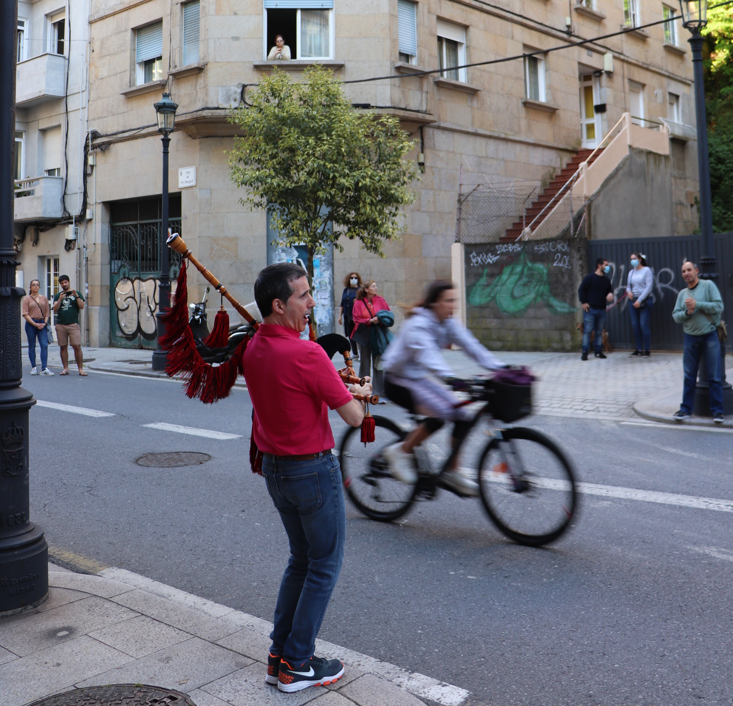 Desde el primer día de confinamiento en la calle Pi y Margall, a escasos metros del Colegio Carmelitas, sonó con potencia una gaita. Eran mediados de marzo y los vecinos salían al balcón, como en otros muchos lugares, a ofrecer su aplauso solidario con sanitarios y muchos más colectivos que luchaban por frenar el virus.