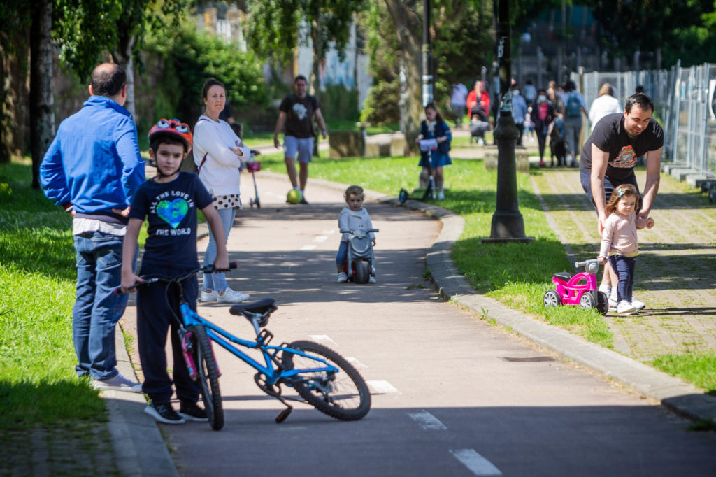 Al igual que el sábado, jornada en la que se abrieron las puertas de casa para paseos y actividad deportiva, el buen compartimiento fue la tónica general. Muchas mascarillas pero sobre todo distanciamiento social, corrillos a dos metros y conversaciones mínimas para seguir disfrutando del paseo.