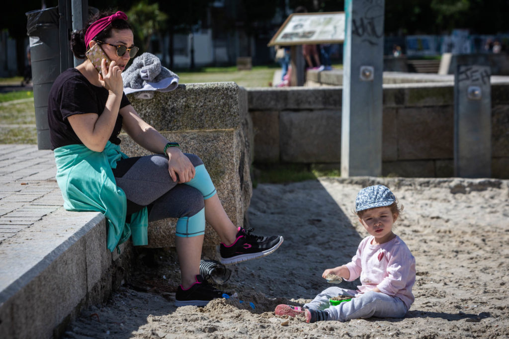 Nada más reparador que el sol sobre la cara después de 50 días de confinamiento. Este domingo, 3 de mayo, los vigueses salieron a la calle para aprovechar los últimos rayos del día. Hubo de nuevo estampida a las ocho de la tarde, pero esta vez ya no sorprendió a nadie, todos esperaban ver las mismas imágenes que el día anterior.