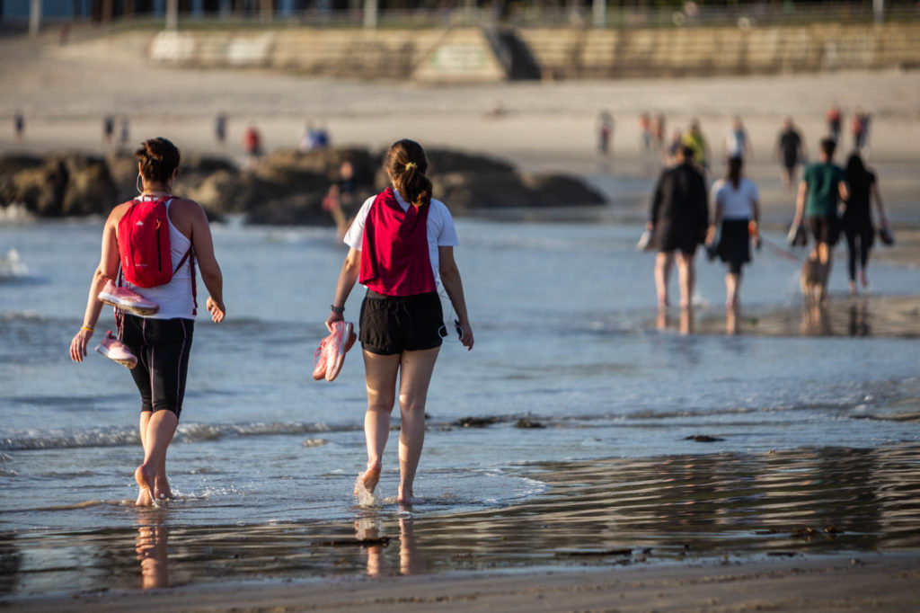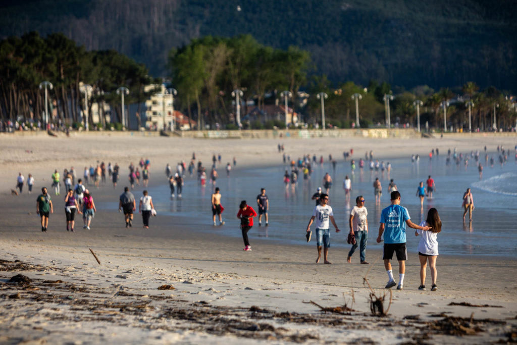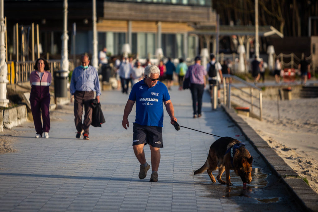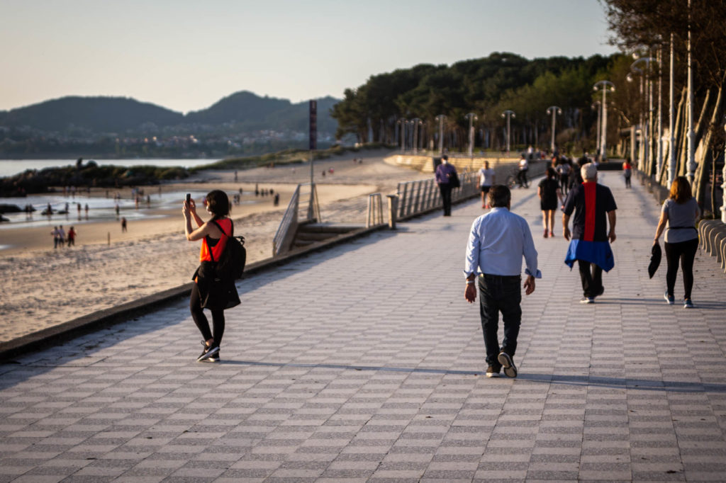 La gran estampida se repitió de nuevo a las ocho de la tarde. Miles de vigueses salieron a la calle y aprovecharon el sol, que todavía regaló hora y media más de rayos reparadores. En Samil, el bullicio fue en aumento, pero al igual que en otros puntos de la ciudad no hubo que lamentar ninguna incidencia y al responsabilidad predominó.