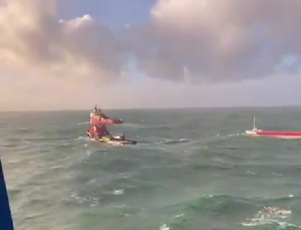 Espectacular vídeo de Gardacostas de Galicia en el que se pueden observar las dificultades para dar remolque al mercante a la deriva