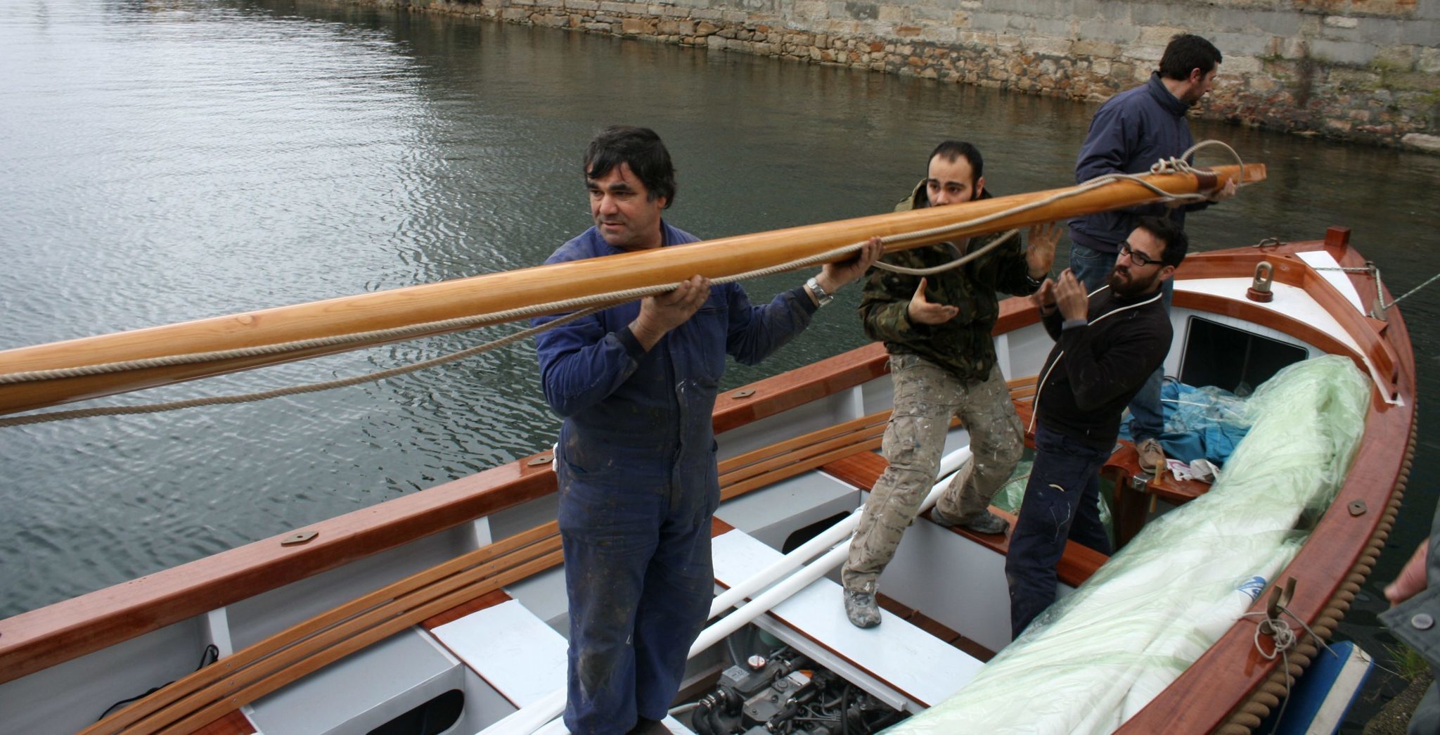 Las primeras pruebas de mar no pudieron ser más satisfactorias. “El calado es el correcto y ha desarrollado una velocidad de 7,2 nudos”, apunta el comandante Nieto. Las verificaciones tenían como objetivo comprobar que el bote respondía adecuadamente con remos, motor y vela. Con un motor intraborda Yammar, con una potencia de 39 cv, y un mástil de madera de 5,80 metros, dispone también de una vela North Sails, fabricada en la factoría de Cuntis, de 15 metros cuadrados, y todo está listo para despachar.