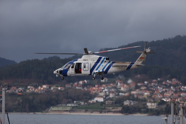 Poco después de localizar los restos, el «Pesca 1» se vio obligado a tomar tierra en el Puerto de Vigo al estar cerrado el aeropuerto de Peinador por la niebla. El helicópero permaneció durante media hora en la Estación Marítima y retomó el vuelo para continuar con las labores de rastreo, ampliadas hasta las Illas de Ons ante la posibilidad de que los marineros fuese arrastrados por el viento en dirección norte.