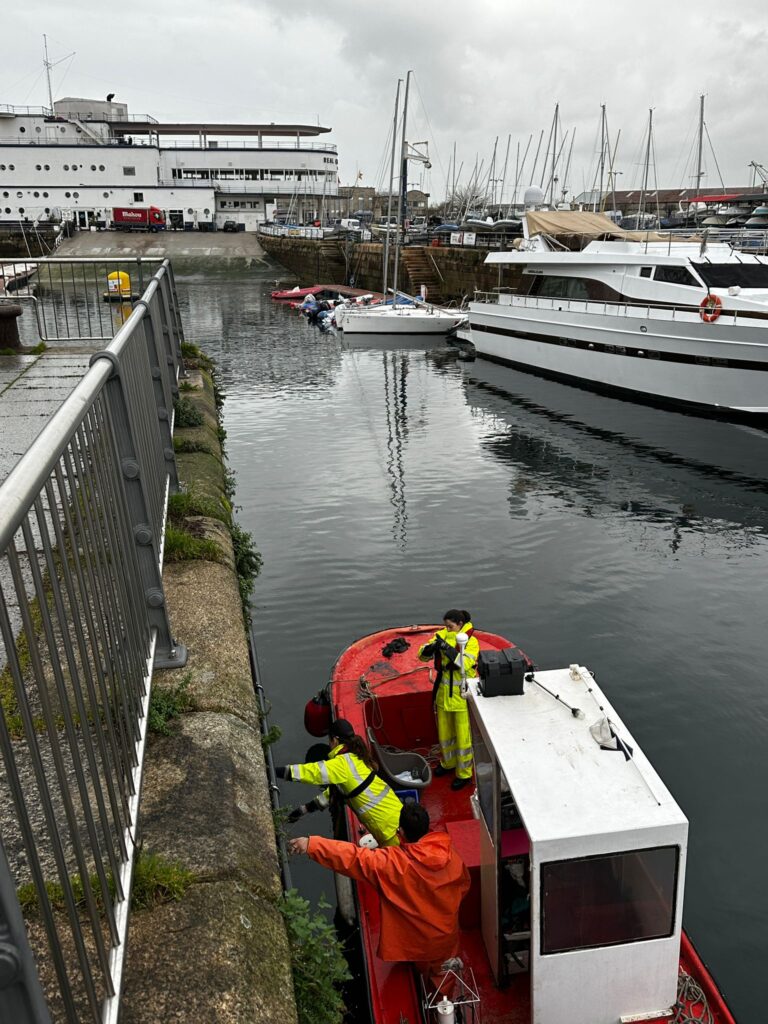 Un equipo de técnicos de la empresa Tecnoambiente, apoyados por personal de Obras, Economía Azul y Sostenibilidad de la Autoridad Portuaria de Vigo, ha estado realizando en los últimos días un diagnóstico de la naturaleza marina en la zona más cercana a la ciudad (Zona I), para lo que ha recogido diferentes muestras de las aguas del puerto para conocer con precisión su estado ecológico.