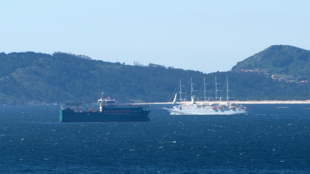 El “Wind Surf” hacía su entrada en aguas viguesas a las seis de la mañana. Procedente de Leixoes, el esbelto crucero de cinco mástiles permaneció amarrado hasta las seis de la tarde, cuando hizo su salida por la bocana norte en dirección al puerto de Ferrol.