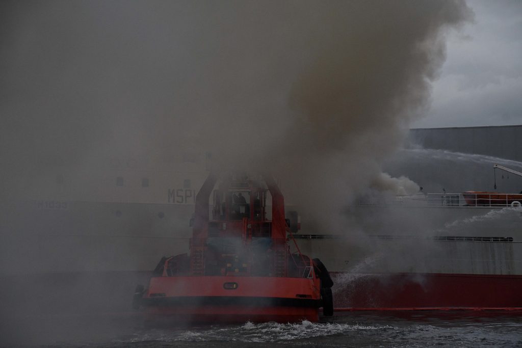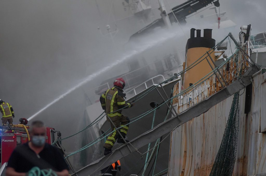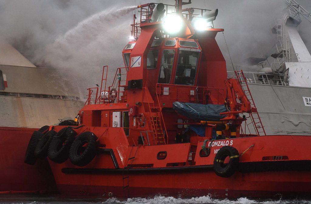 Ni la acción de los bomberos desde tierra ni la de los remolcadores desde el mar pudieron sofocar las llamas. Además, alrededor de las 13.15 horas se registró una pequeña explosión a bordo, aunque no hubo que lamentar heridos en ningún momento. Previamente se había retirado todo el material inflamable de la cubierta (botellas de gases de soldadura, oxígeno y acetileno) con un vehículo del servicio portuario de amarre.