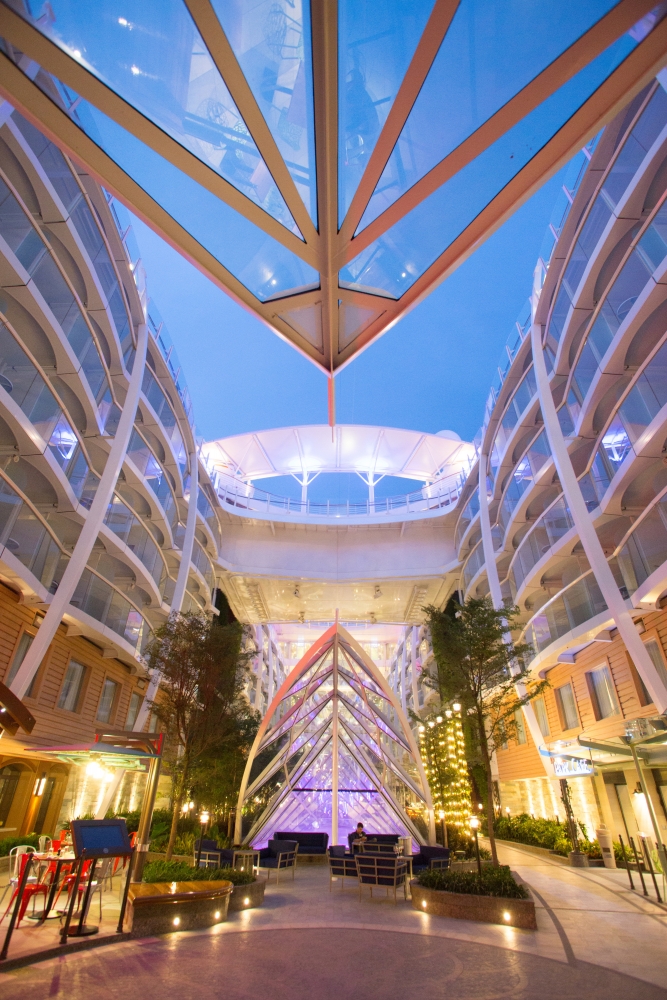 Con ambientes diseñados para satisfacer a cruceristas de todas las edades, desde niños hasta mayores pasando por adolescentes, el coloso dispone de 16 cubiertas, siete vecindarios, una veintena de restaurantes y un parque acuático con un tobogán de 33 metros de caída. En esta escala inaugural, además de contar con la presencia del popular oso panda «Po», de la película Kun Fu Panda, cuenta con representación a bordo del musical «Grease».