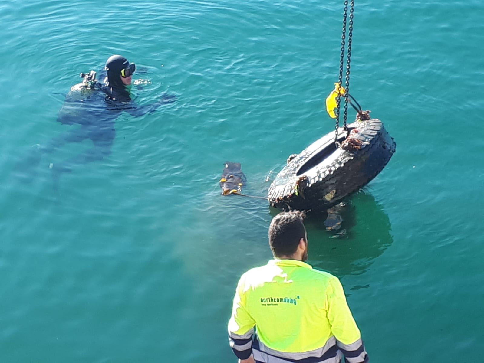 Neumáticos, walkie talkies y un contenedor bajo el mar de Vigo