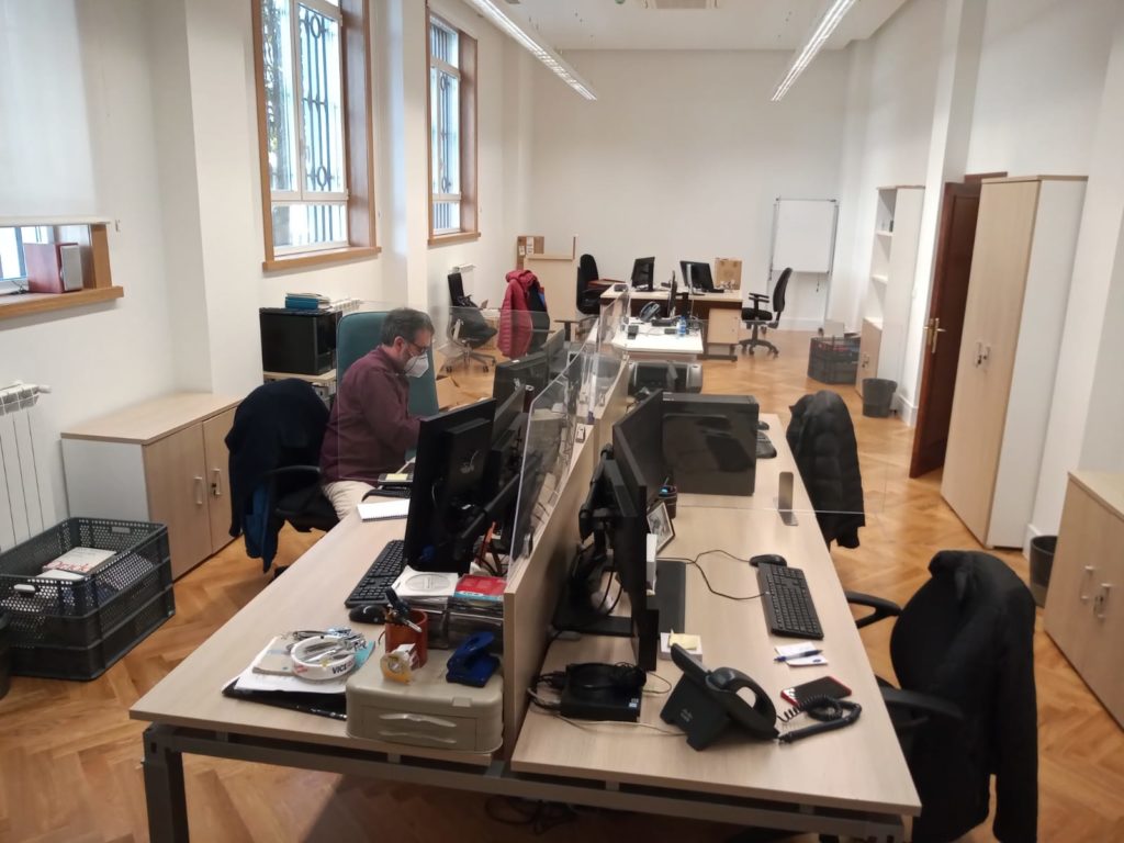 En la zona de actuación de la planta baja se ubican la sala de juntas y una serie de despachos, además del almacén de informática y la sala de telecomunicaciones. Los trabajos consistieron en la reordenación de su distribución, manteniendo la sala de reuniones, y creando tres despachos individuales, una sala de trabajo mayor para el departamento de informática y un nuevo almacén de informática, manteniéndose también la sala de telecomunicaciones. Por su parte, en la zona de intervención de la planta alta, existían 8 despachos, que fueron reordenados, resultando un despacho principal con despacho adjunto de secretariado, 3 despachos generales, y un despacho mayor para 5 puestos de trabajo.
