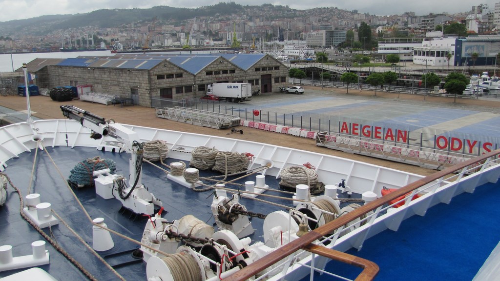 “Esto sí es un barco”, exclama el presidente de la Autoridad Portuaria de Vigo, Enrique López Veiga, cuando desciende la pasarela del “Aegean Odissey”. Acaba de celebrar el tradicional acto de entrega de metopas que se realiza cuando un barco toca por primera vez un puerto. A bordo un centenar de tripulantes cumple con el simulacro de emergencia en la cubierta mientras el capitán describe la magnífica entrada en la Ría de Vigo.