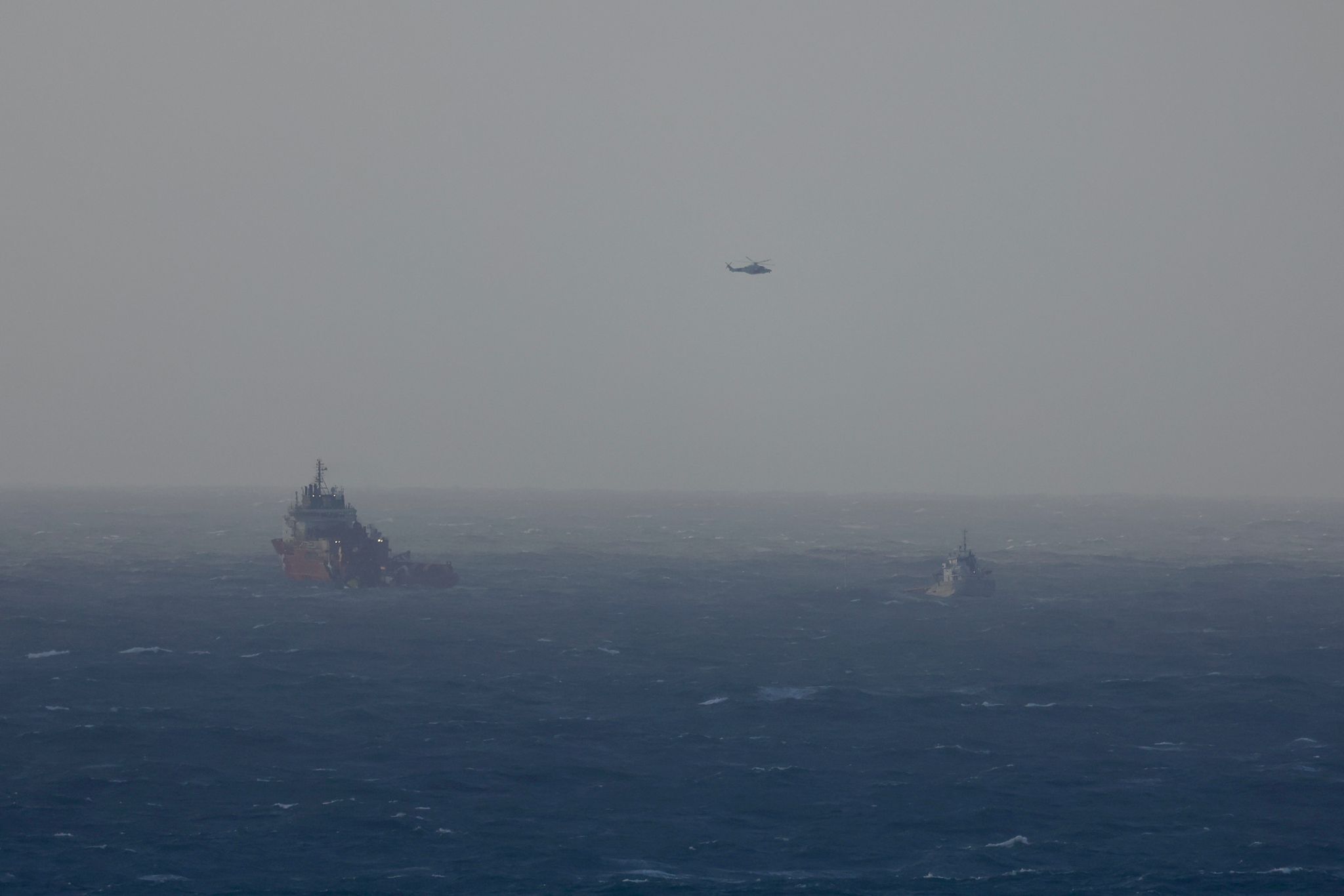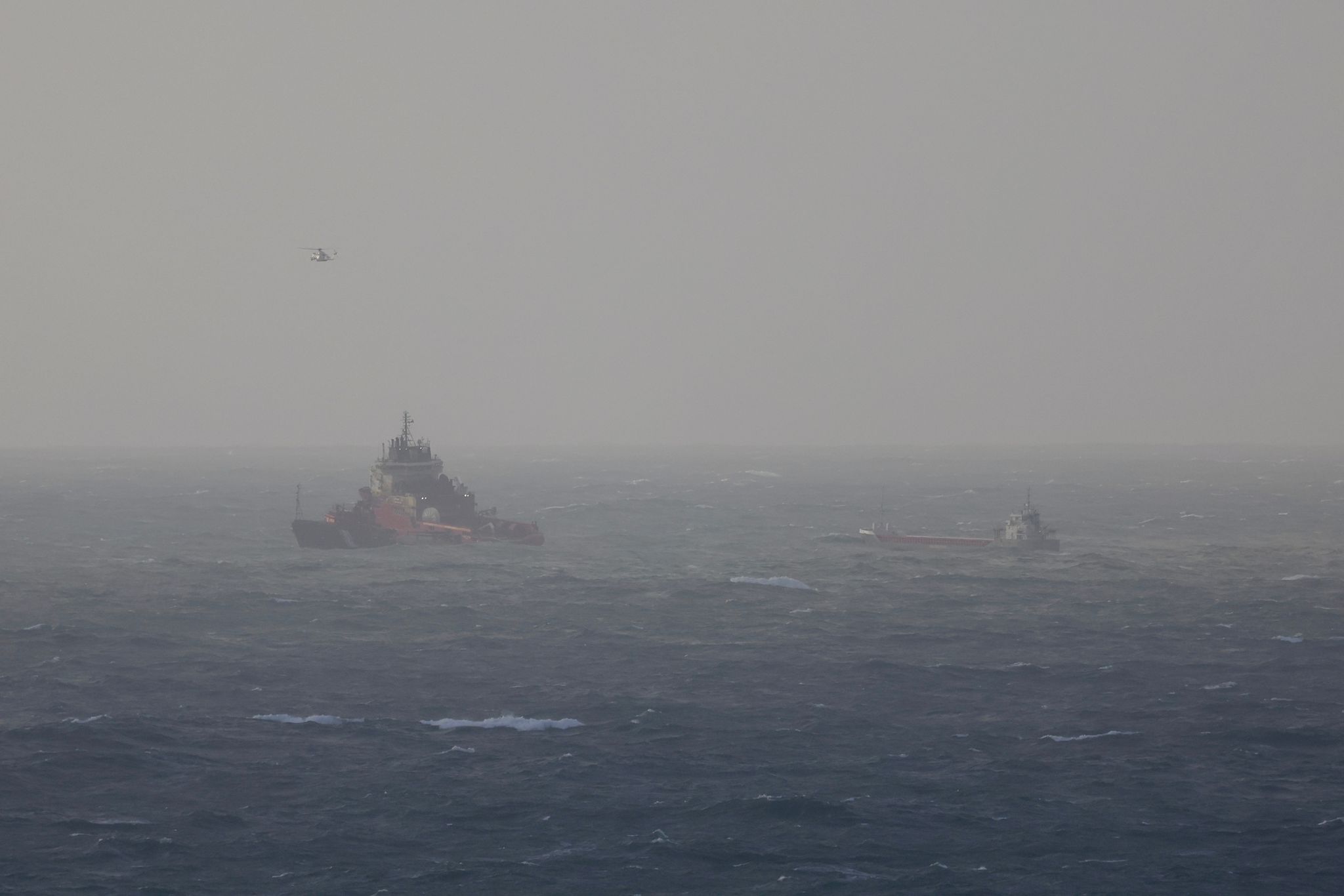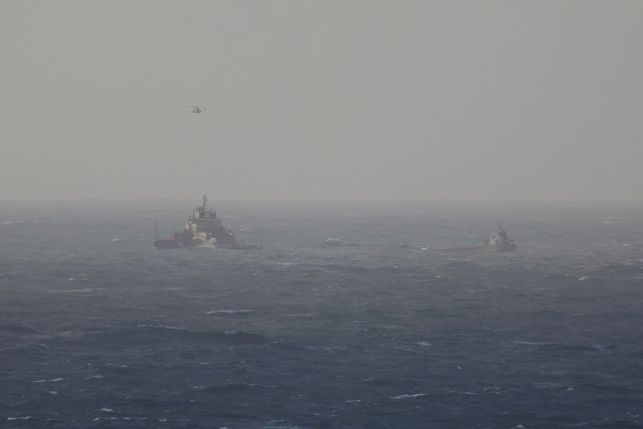 A última hora de la tarde, se incorporó el helicóptero Pesca 1, que sobrevoló la zona para supervisar la operación desde el aire y coordinar con los equipos en superficie. La combinación de estos medios permitió sortear las dificultades y conducir al Eikborg hasta su atraque seguro en uno de los muelles del puerto vigués.