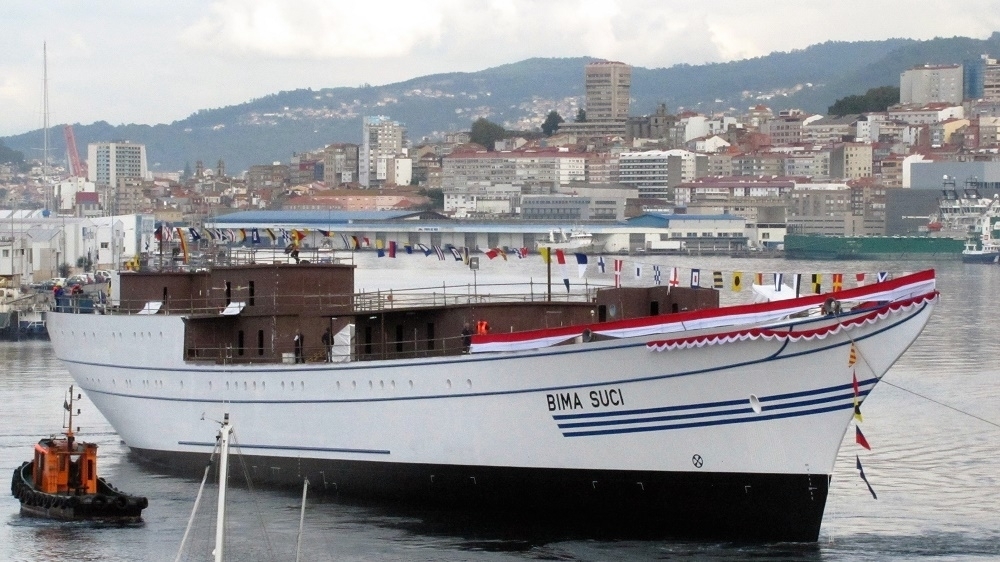 Tiene una eslora de 110 metros, estará aparejado con bricbarca (tres mástiles) y 3.350 metros cuadrados de superficie vélica. El buque escuela «Bima Suci», botado este lunes en Bouzas, dispondrá de una capacidad para alojar a 201 personas a bordo, de las cuales 120 serán cadetes en instrucción, destino principal que le dará la Armada de Indonesia. Este nuevo barco sustituirá al «KRI Dewaruci», también de tres palos y en servicio desde 1953.