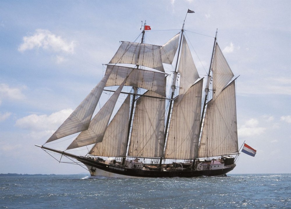El Oosterschelde no es solo un velero, es un emblema de resistencia y patrimonio. Construido en 1918 en los Países Bajos, en un periodo posterior a la Primera Guerra Mundial en el que la vela resurgía como alternativa económica al alto coste del combustible, fue concebido originalmente como un rápido carguero capaz de transportar hasta 400 toneladas de mercancía (arcilla, madera, fruta, etc.).