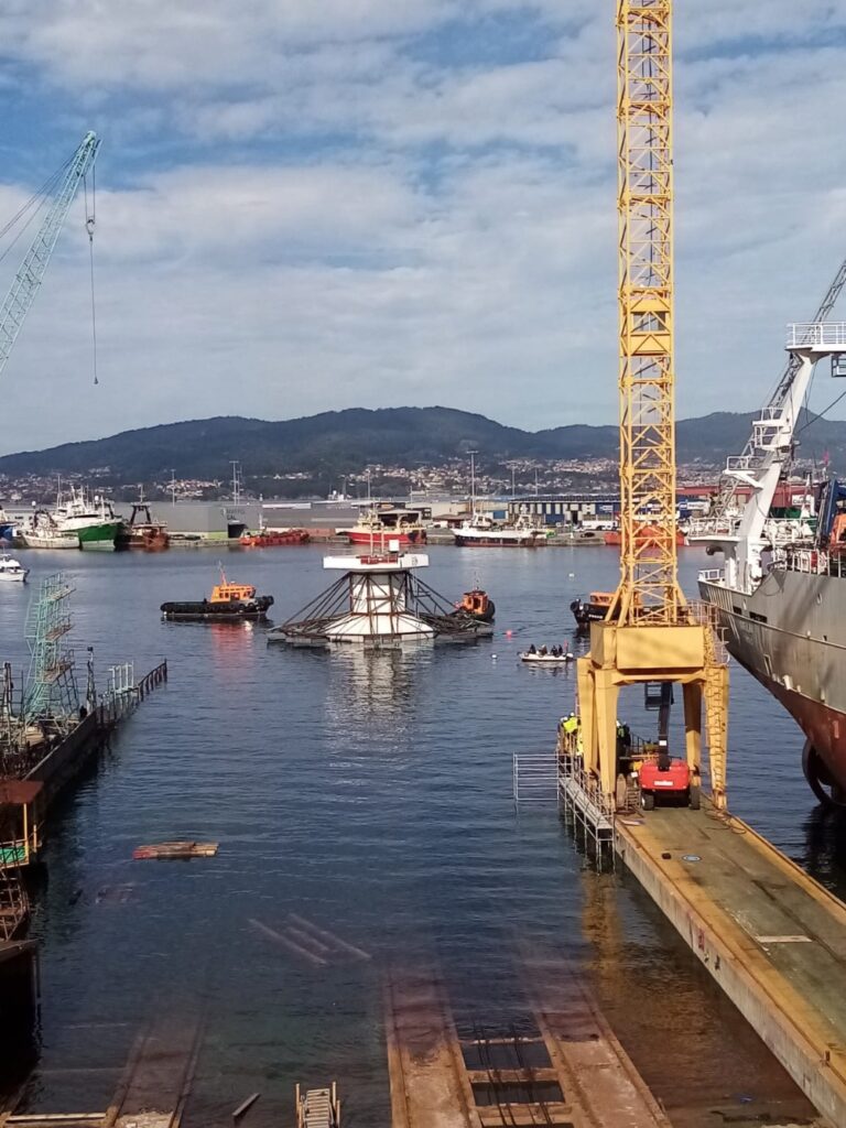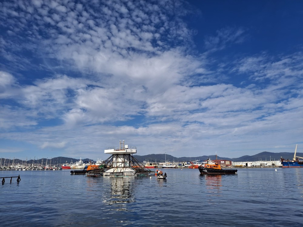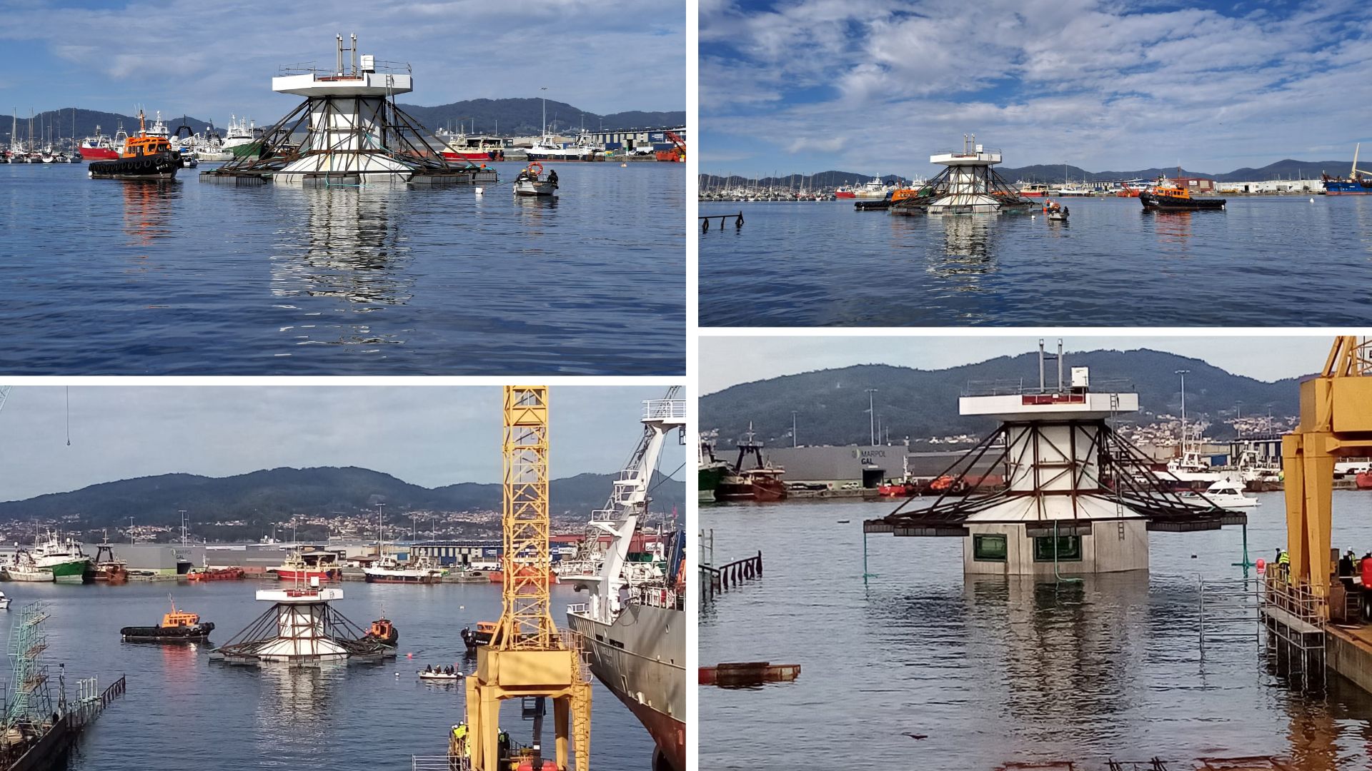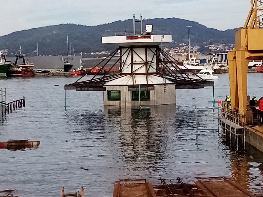 El proyecto Peiraos do Solpor ha dado esta mañana un paso trascendental con el inicio de una operativa logística sin precedentes en el puerto de Vigo: el traslado y botadura del visor submarino. La estructura, que integrará un observatorio único en España, fue remolcada desde las instalaciones del astillero Cardama Shipyard hasta su ubicación definitiva en la escollera de Bouzas.