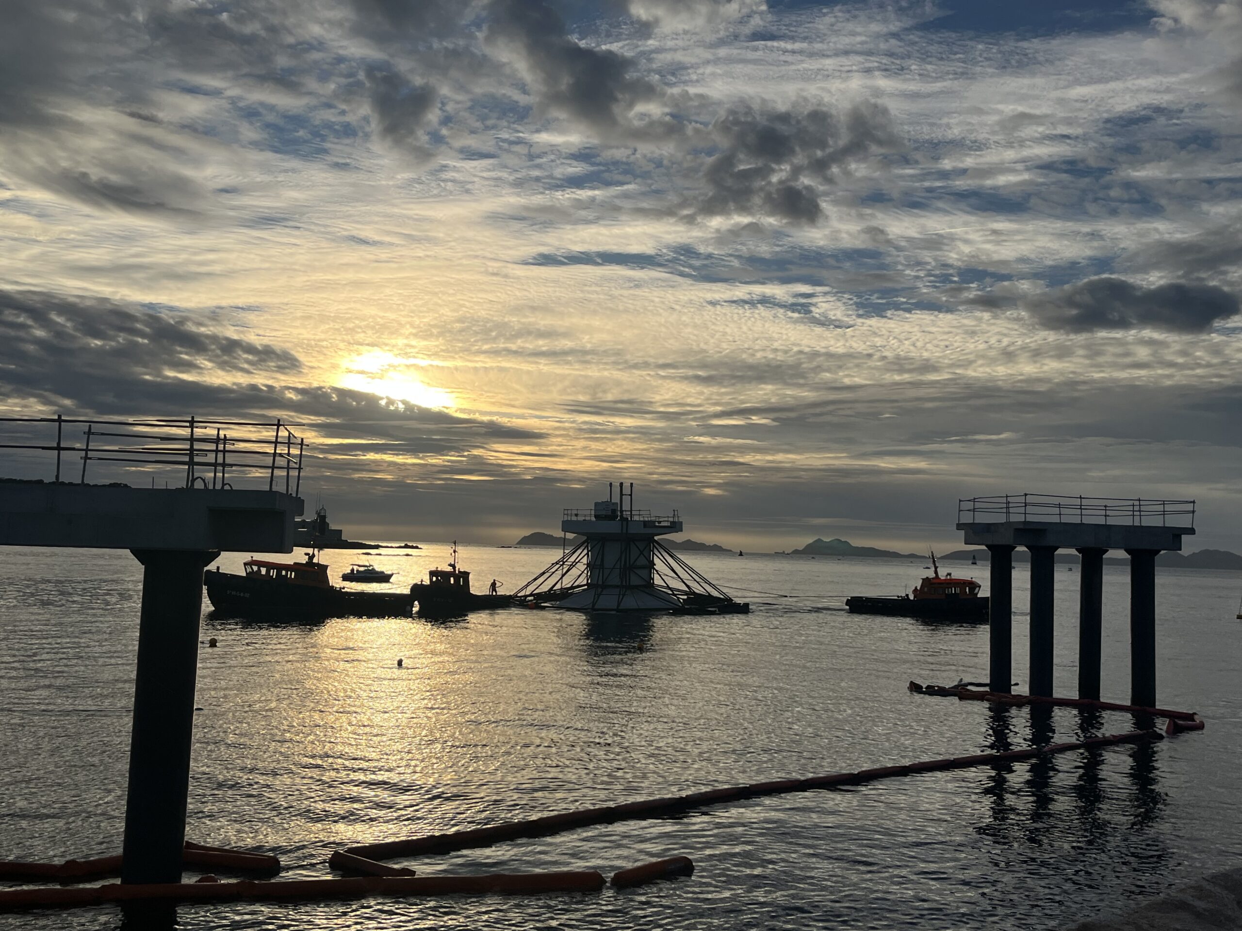 Tras su singladura hacia Bouzas, el visor fue posicionado y lastrado gradualmente con agua de mar en sus tanques interiores. Un proceso lento y paulatino que sirvió para asegurar que se alcanzaba la ubicación precisa.