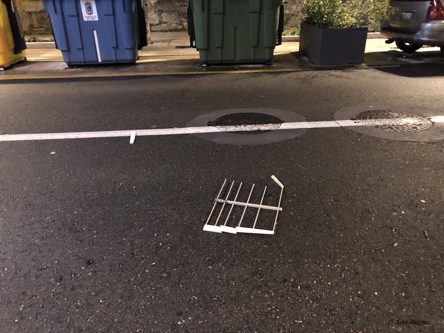 Los fuertes vientos son tanto o más peligrosos que las lluvias torrenciales. Cualquier elemento que esté en los balcones, en las cornisas y en los tejados, puede ser arrastrado por el viento y causar, en el mejor de los casos, sólo desperfectos. Debemos prestar especial atención a las macetas, a las tejas y a los enseres que muchas personas acumulan en los balcones y terrazas. Ahí tenemos, en la fotografía, los restos de una antena de televisión que ha caído desde el tejado de un alto edificio en la ciudad de Vigo, concretamente en la Avenida das Camelias. El peso de lo que queda del artilugio no es muy elevado, sin embargo, la gran altura desde la que se ha precipitado al asfalto lo convierte en un elemento muy peligroso para la circulación y para los transeúntes. Hace años, en la misma calle, el fuerte viento derribó una antena parabólica de más de un metro y medio de diámetro que fue a caer en la acera y que, afortunadamente, no causó víctimas. Está claro que es necesario hacer caso a las recomendaciones de prudencia cuando se avecinan fuertes temporales.