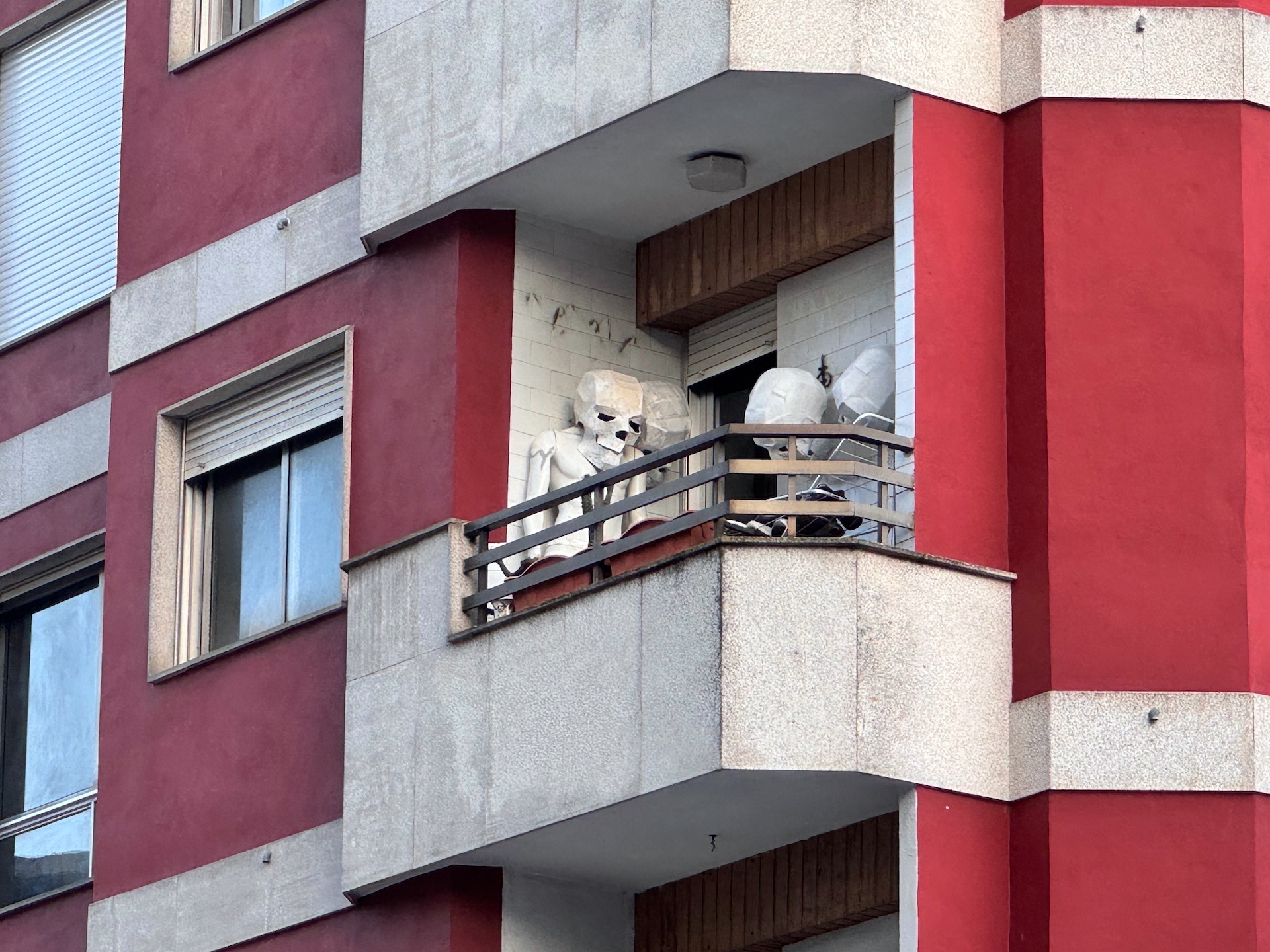 Lo que se muestra en la fotografía pasa prácticamente inadvertido a la vista de los transeúntes. Se trata de un balcón de un piso elevado de un edificio de la ciudad de Vigo, en una calle muy céntrica y muy transitada. Pero las prisas de la vida cotidiana no suelen favorecer que las personas levanten la vista hacia lo alto, como mucho, la mirada al frente, y así se pierden todos estos detalles tan curiosos.