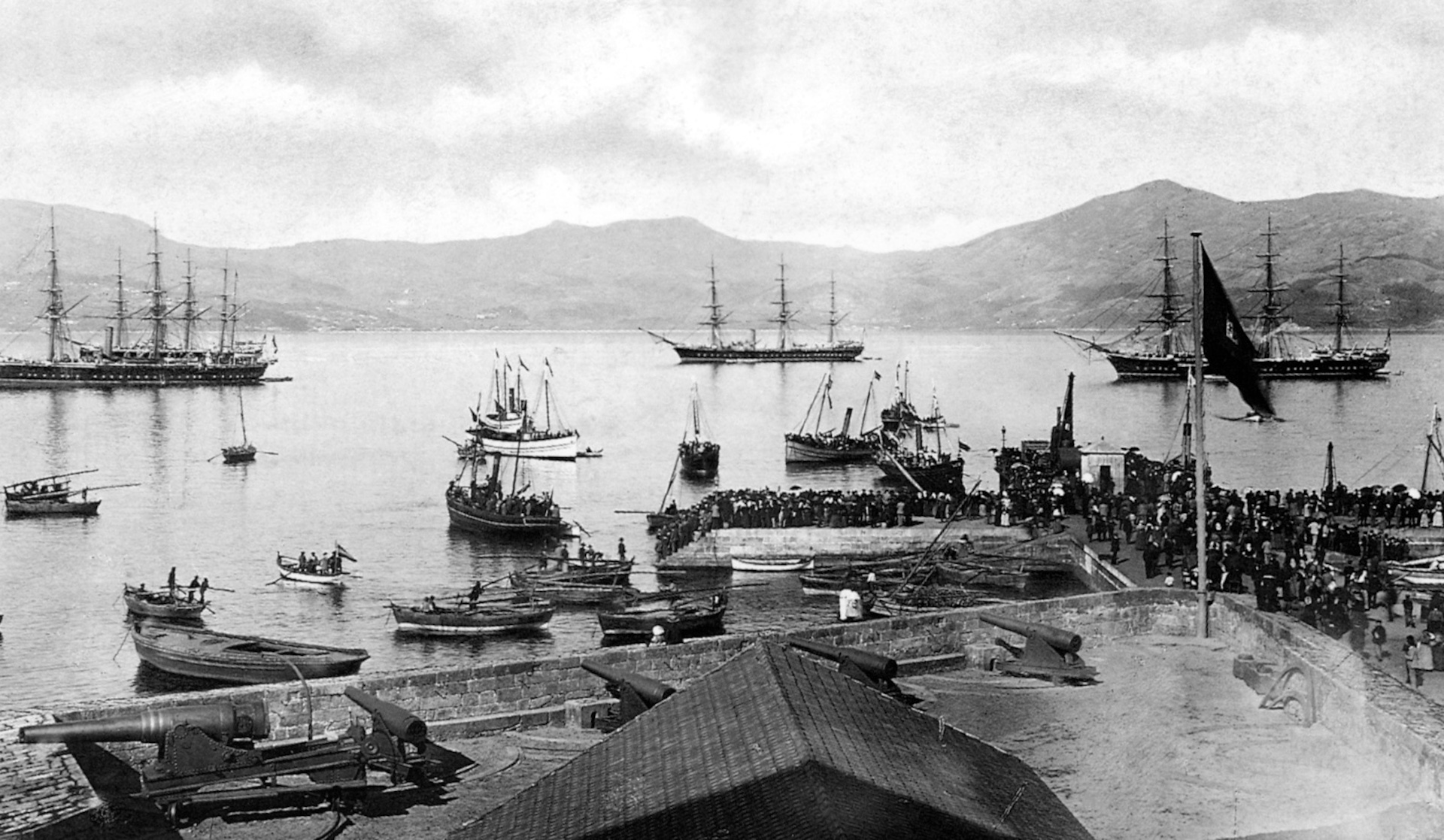 Esta histórica fotografía de Pacheco muestra la llamada Batería de A Laxe en 1880, en la ciudad de Vigo. Se...